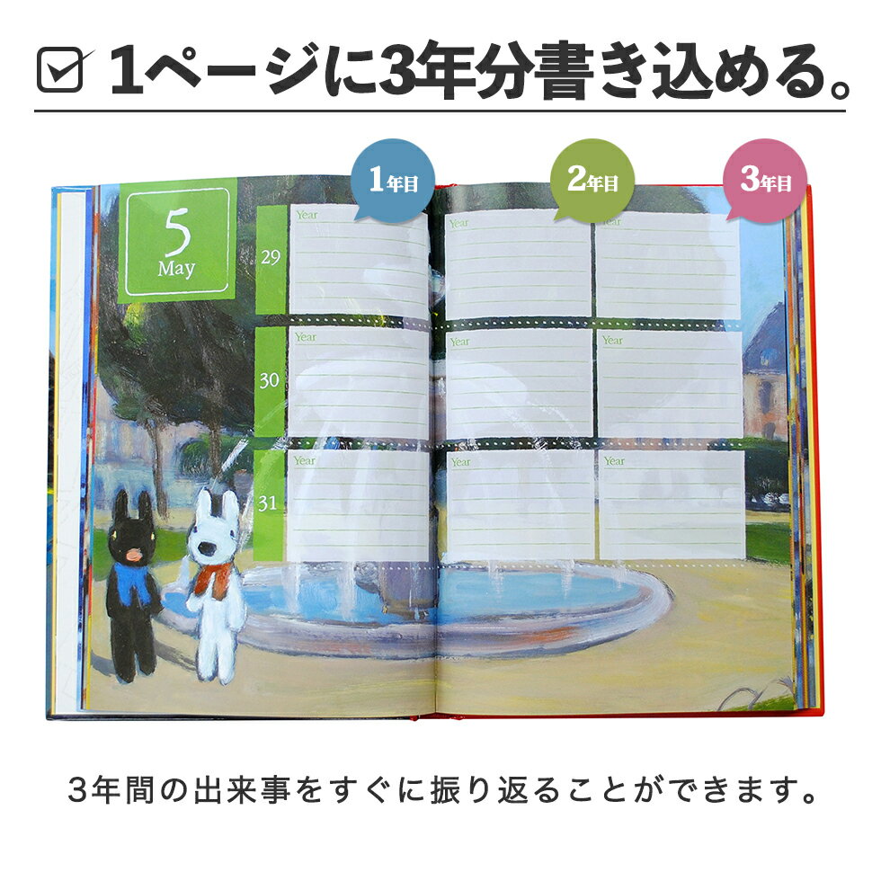 【BF限定CP】 日記帳 いつから始める? キャラクター かわいい 美しい アート 画集【 3年日記 リサとガスパール】お祝い プレゼント 母の日 父の日 敬老の日 新生活 育児日記 ギフト 贈り物 年号書き込み式 名入れ 箔押し ディアカーズ