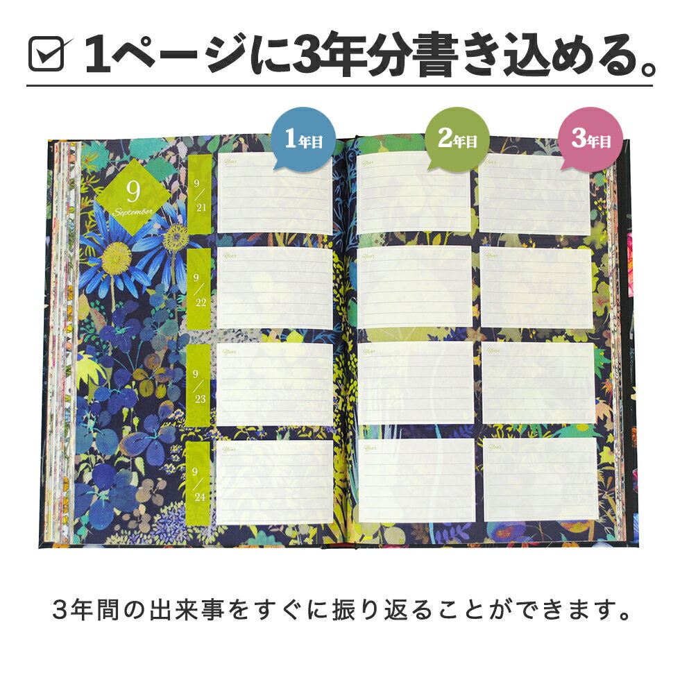 【BF限定CP】 日記帳 いつから始める? キャラクター かわいい 美しい アート 画集【3年日記 リバティ・ファブリックス】お祝い プレゼント 母の日 父の日 敬老の日 新生活 育児日記 ギフト 贈り物 年号書き込み式 名入れ 箔押し ディアカーズ