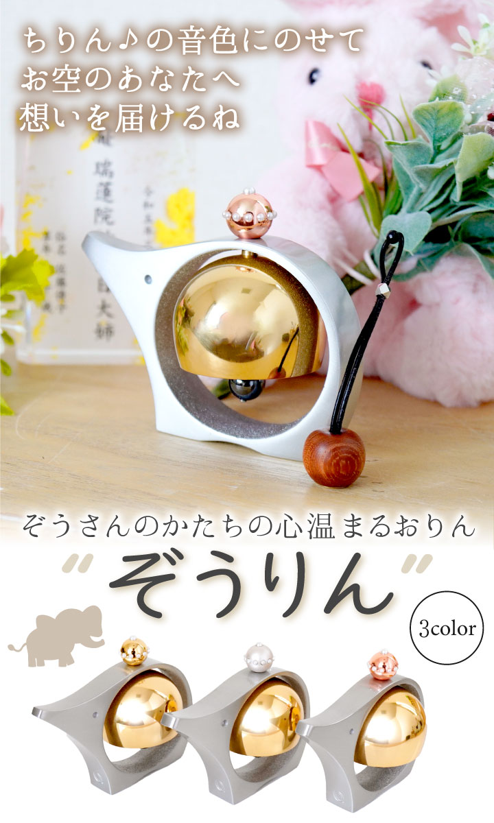 仏具 象のかたちの おりん ぞうりん 国産 シルバー ゴールド ピンクゴールド 揺らす かわいい おしゃれ 動物 コンパクト 納骨堂 おりんセット 手元供養 水子供養 子供