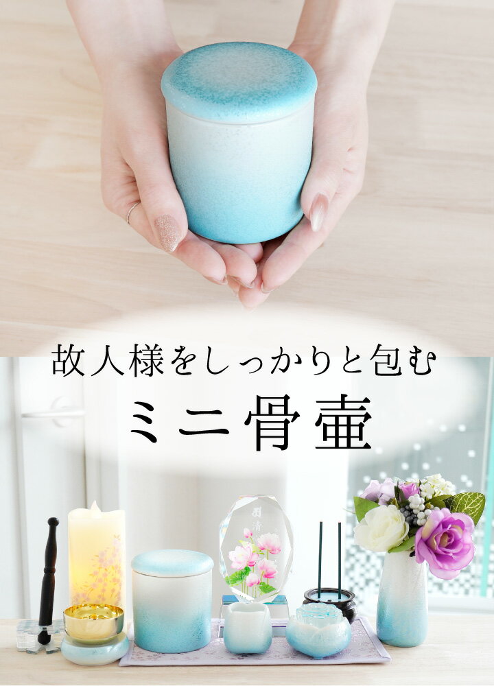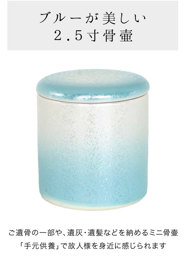 骨壷 国産 パッキン付 2.5寸 やわらぎ ラスター ブルー オーロラ 水色 手元供養 美濃焼 骨壺 骨つぼ ミニ骨壷 コンパクト かわいい 遺品 遺骨 遺灰 遺髪 分骨 シンプル 仏具 入れ物 ケース 水子供養 子供 シリコン