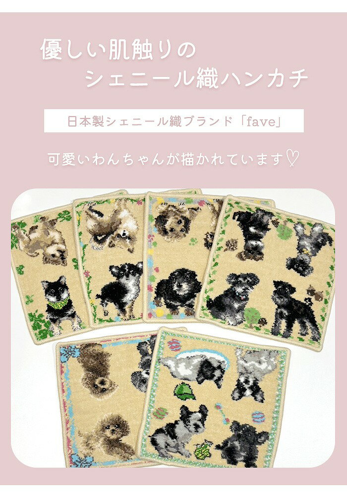 【無料簡易ラッピング】シェニール織 タオルハンカチ 日本製 綿100% 犬 ペット 愛犬 わんちゃん 安心 ギフト 贈り物 プレゼント シェニールタオル 23cm ベージュカラー チワワ トイプードル フレブル フレンチブルドッグ ダックスフンド 柴犬 ミニチュアシュナウザー FV-DOG