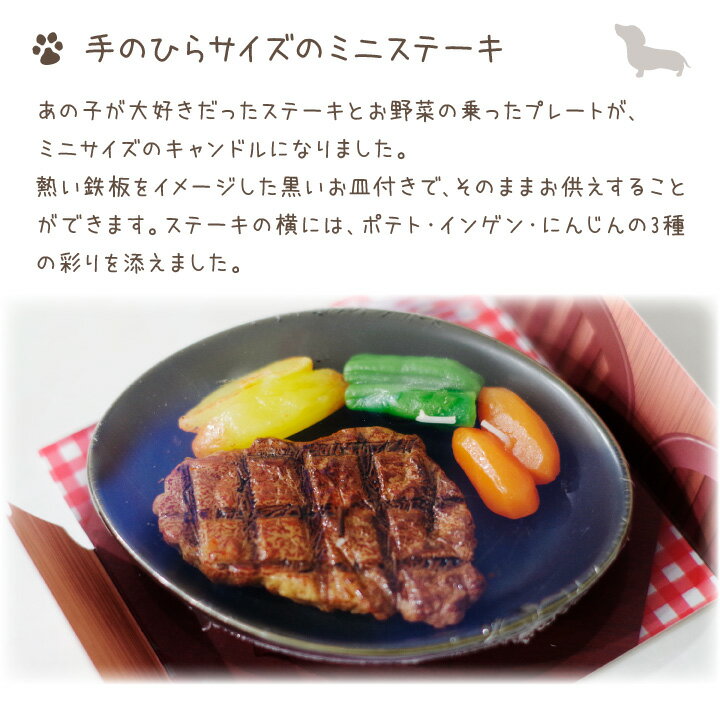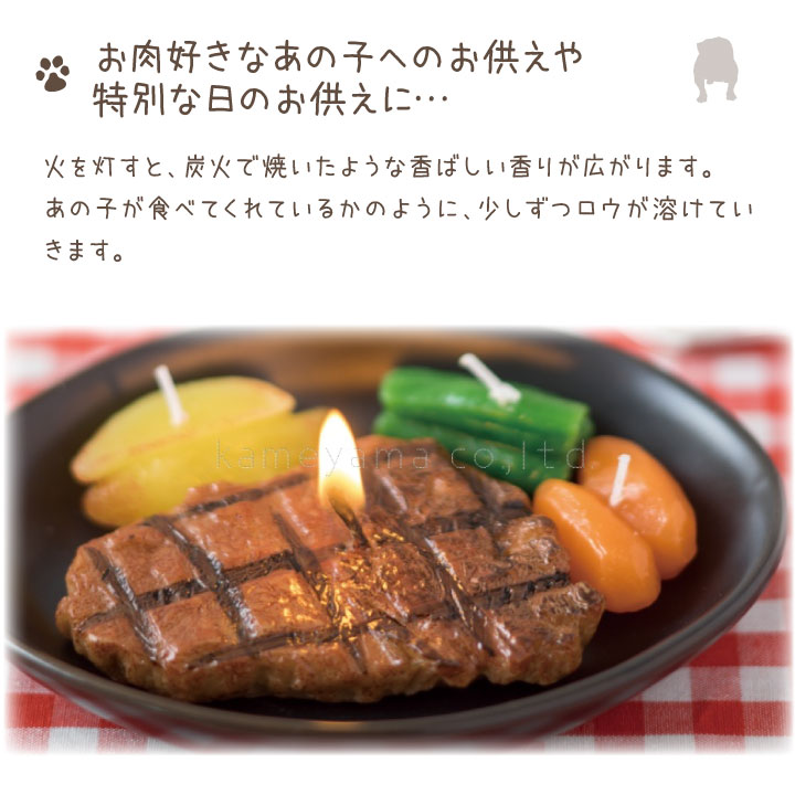 ペット仏具 ステーキ キャンドル ロウソク ろうそく ペット供養 ペット メモリアルグッズ 犬 猫 お供え 肉 お肉 良い香り 贈り物 贈答 ギフト お悔やみ 食べ物 ミニチュア 本物そっくり 供物 カメヤマ