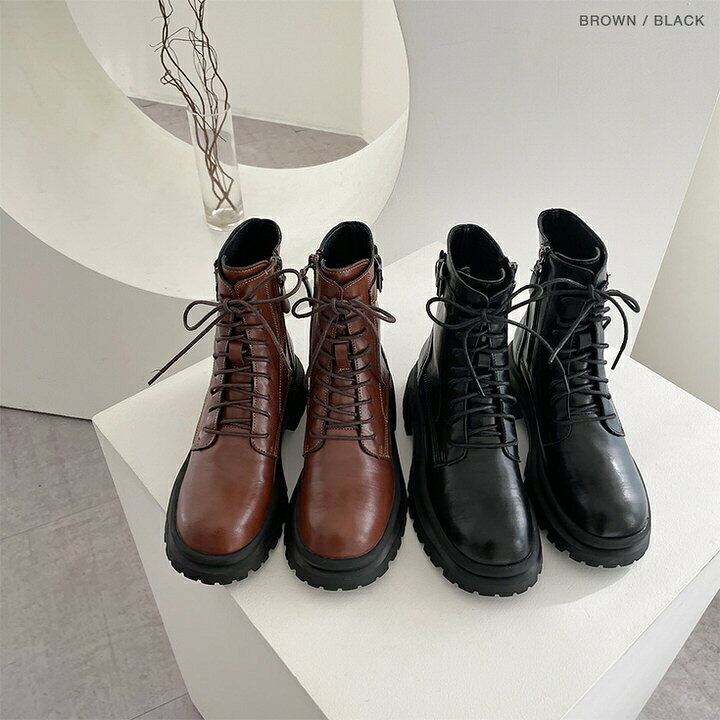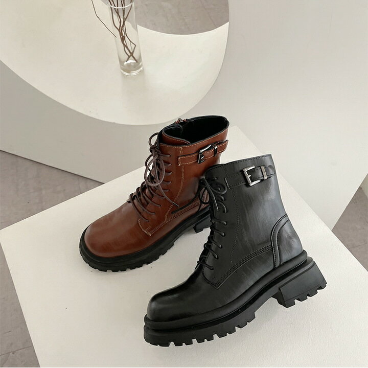 ショートブーツ ワークブーツ レースアップ 牛革 トラックソール 厚底 レディース 黒 茶色 ブラック ブラウン 歩きやすい 痛くない カジュアル 靴 婦人靴 韓国