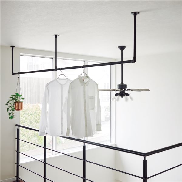 ハンギングバー 約178cm×47cm ブラック H-2 天井付けCタイプセット 日本製 リビング ダイニング 洗濯物 観葉植物【代引不可】