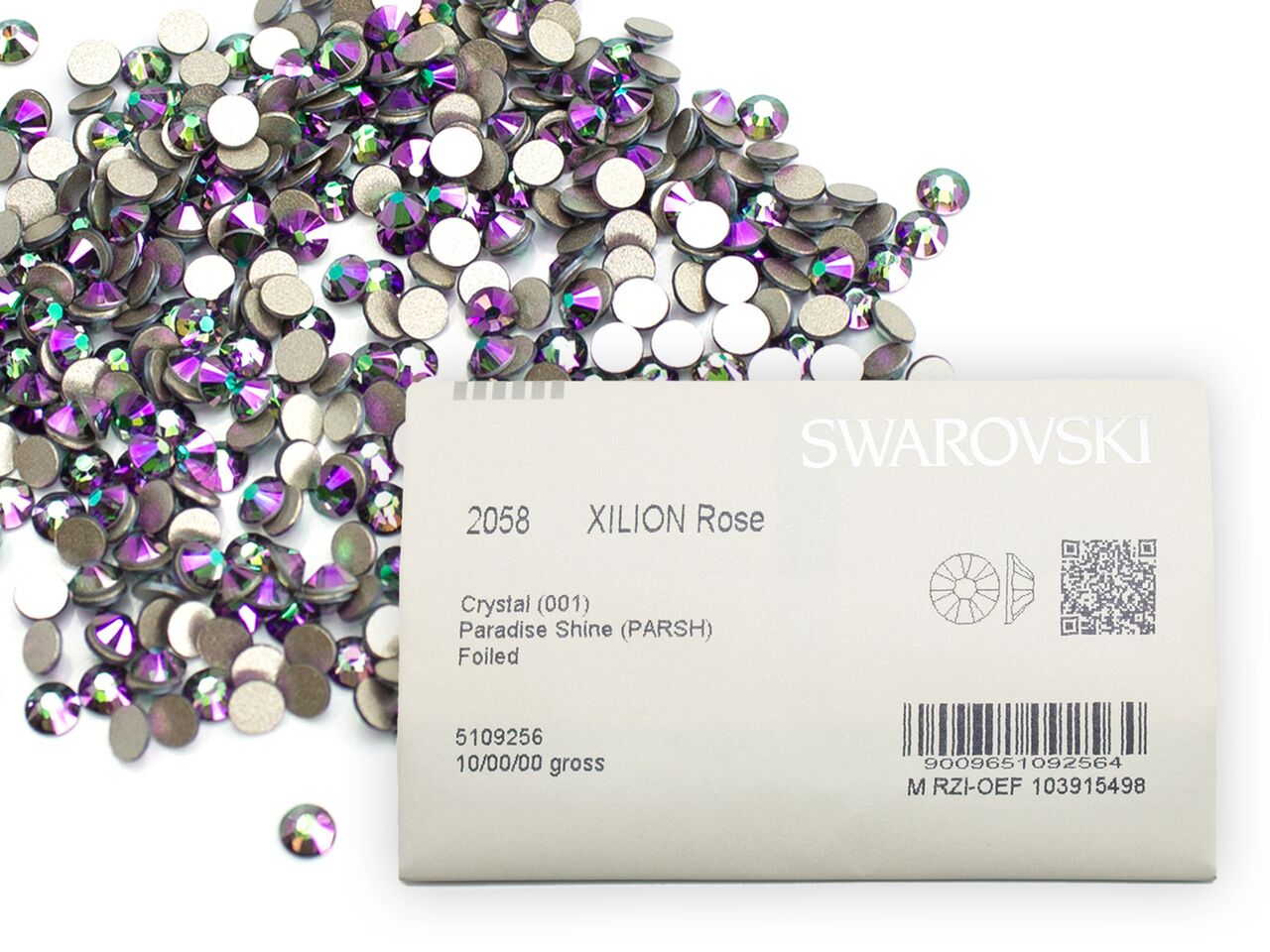 2015年の春夏新色。 角度により紫やグリーンといった色味になる美しいカラーです。 このシリーズのss12〜ss48は、#2058から#2088へとアップグレード致しました。2015年以降スワロフスキー社の在庫が無くなり次第順次切り替わり、ss12より大きいサイズは2024年7月11日、全て#2088となりました。 #2058・#2088型番の違いはカットの違いです。#2088はトップ面が小さくなり、高さが増しました。 正式商品名: SWAROVSKI ELEMENTS 2058 XILION Rose Enhanced Crystal (001)paradise shine (PARSH) Foiled SWAROVSKI ELEMENTS 2088 XILIUS Rose Enhanced Crystal (001)paradise shine (PARSH) Foiled ss5、ss7、ss9、ss12 、ss16 、ss20 、ss30 、ss34 サイズを5粒、10粒、50粒、100粒、パック(グロス)単位など、お好みの小分け数量でご購入いただけます。 ※記載のサイズは、在庫状況やその他の事情により取り扱いがない場合がございます。最新の取り扱い状況はお問い合わせいただくか、商品ページにてご確認ください。