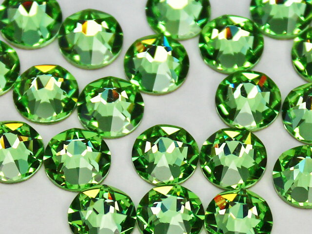 明るい緑。 このシリーズのss12〜ss48は、#2058から#2088へとアップグレード致しました。2015年以降スワロフスキー社の在庫が無くなり次第順次切り替わり、ss12より大きいサイズは2024年7月11日、全て#2088となりました。 #2058・#2088型番の違いはカットの違いです。#2088はトップ面が小さくなり、高さが増しました。 正式商品名: SWAROVSKI ELEMENTS 2000 Rose Flat Backs Peridot(214) SWAROVSKI ELEMENTS 2058 XILION Rose Enhanced Peridot(214) SWAROVSKI 2088 XILIUS Rose Enhanced Peridot(214) Foiled ss3、ss5、ss7、ss9、ss12 、ss16 、ss20 、ss30 、ss34 サイズを1粒、5粒、10粒、50粒、100粒、パック(グロス)単位など、お好みの小分け数量でご購入いただけます。 ※記載のサイズは、在庫状況やその他の事情により取り扱いがない場合がございます。最新の取り扱い状況はお問い合わせいただくか、商品ページにてご確認ください。
