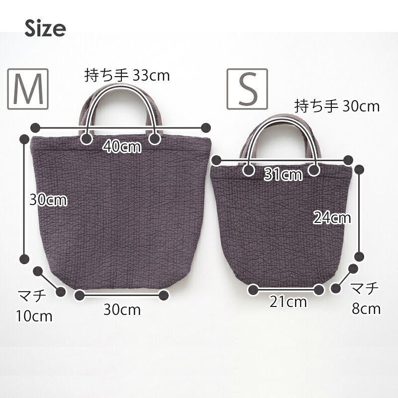 SNS等で大人気!おしゃれママさんの間で流行中の「ヌビバッグ」。 デコレクションズの大人気オリジナルカラー・ヌビキルティング生地を使用。 綿100%のコットン生地で中綿をサンドした生地は、もちもちした優しい肌触りとナチュラルなシワ感が特徴です。 可愛すぎない絶妙なくすみカラーと、スタイリッシュかつシンプルなデザインで、大人から子供まで世代を超えて気軽にお使いいただけます。コーディネートやシーンを選ばず、メインでもサブバッグとしてもオールシーズン活躍します。 Mサイズは、A4サイズが縦でも横でもすっきり収まる使い勝手の良いサイズ感で、通勤や通学にもおすすめ。約10cmのマチ付きで収納力はバッチリ! Sサイズは小ぶりなわりに意外と入るので、コンパクトにまとめたい方におすすめ!約8cmのマチ付きなのでコンパクト見えで収納力もしっかりほしい方に◎ 大きな口で中身が見えやすく、荷物の出し入れも楽チン。とっても軽量で、シワを気にせずコンパクトに折り畳めるのも嬉しいポイント。 スマホや小物の収納に便利な内ポケット&開口部はマグネットボタン付きでしっかり中身を隠せます。 持ち手はパイピングにすることで、手が痛くなりにくく、たくさん荷物を入れても安心な丈夫さ◎ 洗濯機の手洗いコースで丸洗いができ、薄く乾きやすいためお手入れらくらく。 いつでも清潔に保てるため、デイリーユースやお子様用レッスンバッグにもぴったりです。 こちらは、自然な色の濃淡とふんわり柔らかい肌触りに仕上げるピグメント染色をほどこしております。 お洗濯を重ねることで色味と風合いが馴染み、味わい深い独特のフェード感と表情の変化を楽しめます。 ヌビバッグ マチ付き ヌビ イブル 韓国 雑貨 キルティングバッグ レッスンバッグ おけいこバッグ 洗える 保育園 幼稚園 小学校 スクールグッズ 通園 通学 準備 入園 入学グッズ サブバッグ マザーズバッグ ママバッグ マザーバッグ トートバッグ キルトバッグ 軽量 男の子 女の子 大人 シンプル かわいい オシャレ 人気 おしゃれ かっこいい 流行 ブーム インフルエンサー ユニセックス レディース 大きめ 出産 出産祝い 軽い 大きい 布 オールハンドメイド 韓国製 上靴入れ 手提げかばん マグネットフック付き 内ポケット 手作り縫製済み完成品です。手作りキットではございません。 サブバッグ/トートバッグ/ランチバッグ de suite/デスイート/マチ付きヌビバッグ(Mサイズ/Sサイズ) SNS等で大人気!おしゃれママさんの間で流行中の「ヌビバッグ」。 デコレクションズの大人気オリジナルカラー・ヌビキルティング生地を使用。 綿100%のコットン生地で中綿をサンドした生地は、もちもちした優しい肌触りとナチュラルなシワ感が特徴です。 可愛すぎない絶妙なくすみカラーと、スタイリッシュかつシンプルなデザインで、大人から子供まで世代を超えて気軽にお使いいただけます。コーディネートやシーンを選ばず、メインでもサブバッグとしてもオールシーズン活躍します。 Mサイズは、A4サイズが縦でも横でもすっきり収まる使い勝手の良いサイズ感で、通勤や通学にもおすすめ。約10cmのマチ付きで収納力はバッチリ! Sサイズは小ぶりなわりに意外と入るので、コンパクトにまとめたい方におすすめ!約8cmのマチ付きなのでコンパクト見えで収納力もしっかりほしい方に◎ 大きな口で中身が見えやすく、荷物の出し入れも楽チン。とっても軽量で、シワを気にせずコンパクトに折り畳めるのも嬉しいポイント。 スマホや小物の収納に便利な内ポケット&開口部はマグネットボタン付きでしっかり中身を隠せます。 持ち手はパイピングにすることで、手が痛くなりにくく、たくさん荷物を入れても安心な丈夫さ◎ 洗濯機の手洗いコースで丸洗いができ、薄く乾きやすいためお手入れらくらく。 いつでも清潔に保てるため、デイリーユースやお子様用レッスンバッグにもぴったりです。 こちらは、自然な色の濃淡とふんわり柔らかい肌触りに仕上げるピグメント染色をほどこしております。 お洗濯を重ねることで色味と風合いが馴染み、味わい深い独特のフェード感と表情の変化を楽しめます。 →その他のヌビバッグはこちらから ■商品詳細 サイズ 【Mサイズ】 幅:約40cm(底幅:約30cm)×高さ:30cm×マチ:10cm 持ち手(長さ) 33cm 内ポケット(長さ) 縦:約17.5cm×横:約20cm 【Sサイズ】 幅:約31cm(底幅:約21cm)×高さ:24cm×マチ:8cm 持ち手(長さ) 31cm 内ポケット 縦:約15cm×横:約17cm 底板:約22.5cm×8cm(厚さ2.5mm) 重さ Mサイズ:約207g Sサイズ:約150g(底板なしの場合) 素材 ヌビキルティング生地(表・裏/コットン100%・中綿/ポリエステル100%) 企画・監修 日本 縫製 韓国または日本 お手入れ方法・使用上の注意 ・お洗濯は洗濯ネットや中性洗剤を使用して手洗いかドライコースで洗濯することをお勧めします。 ・ヌビバッグの生地は、染色・素材の特性上、水分・摩擦などにより色落ちすることがございます。お洋服や他バッグ等への色移りに十分ご注意下さい。 