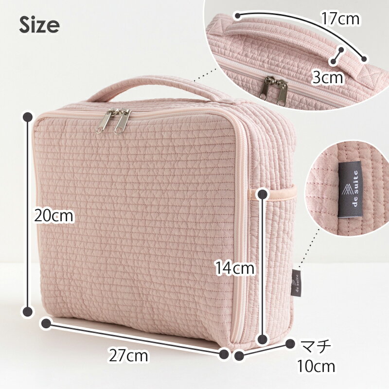SNSのオシャレさんの新定番、軽くてふんわり柔らかい「ヌビ生地」を使用したおむつポーチ。 おむつやお着替え、おしりふきなど、赤ちゃんとのお出掛けに必要なアイテムがしっかり入る大容量サイズ。 荷物が一つにまとまるのでバッグの中もごちゃつかずスッキリと整頓できます。 大きく開いて荷物が入れやすく取り出しやすい、コの字ダブルファスナー仕様◎ 両サイドに消毒液や袋などを入れるのに便利なポケット付き。 洗濯機の手洗いコースで丸洗いができ、薄く乾きやすいためお手入れ楽ちん。いつでも清潔に保てます。 おむつ入れはもちろん、出産時の入院ポーチや、下着・スキンケア用品を入れるトラベルポーチとして、マルチにお使いいただけます。 飽きのこない上品シンプルなデザインだから、出産ギフトにもおすすめのアイテムです。 本商品は、当店の姉妹店でもある手芸ショップ「デコレクションズ」のオリジナルカラー・本場の韓国輸入ヌビ生地を使用しています。 自然な色の濃淡とふんわり柔らかい肌触りに仕上げるピグメント染めのため、お洗濯を重ねることで色味と風合いが馴染み、ヴィンテージのような味わい深いフェード感と表情の変化を楽しめます。 ポーチ 小物入れ 大きめ 小さめ 可愛い ミニポーチ 圧縮 出産 準備 男の子 女の子 プレゼント ギフト 韓国 雑貨 出産祝い ヌビ かわいい まとまる 軽量 軽い コンパクト 大容量 洗える おむつ おしり拭き 着替えバッグ オムツポーチ おむつ入れ ベビー おむつバッグ 韓国 ヌビ ナチュラル トラベルポーチ バニティポーチ バッグ 赤ちゃん シンプル おむつケース おしりふきポーチ おしりふきケース 高品質 高見え ニューボーン ベビーグッズ おしゃれ お洒落 ベビー用品 ママグッズ プレゼント ギフト ベビーカー キルティング キルト 北欧 ショッピング こどもの日 子供の日 子どもの日 クリスマス 子供服 赤ちゃん 幼児 子供 キッズ 女の子 男の子 保育園 子供会 友達 孫 一歳 1歳 1歳半 2歳 3歳 4歳 5歳 送料無料 オールハンドメイド 韓国製 手作り縫製済み完成品です。手作りキットではございません。 トラベルポーチ/着替えバッグ/小物入れ de suite/デスイート/ヌビおむつポーチ SNSのオシャレさんの新定番、軽くてふんわり柔らかい「ヌビ生地」を使用したおむつポーチ。 おむつやお着替え、おしりふきなど、赤ちゃんとのお出掛けに必要なアイテムがしっかり入る大容量サイズ。 荷物が一つにまとまるのでバッグの中もごちゃつかずスッキリと整頓できます。 大きく開いて荷物が入れやすく取り出しやすい、コの字ダブルファスナー仕様◎ 両サイドに消毒液や袋などを入れるのに便利なポケット付き。 洗濯機の手洗いコースで丸洗いができ、薄く乾きやすいためお手入れ楽ちん。いつでも清潔に保てます。 おむつ入れはもちろん、出産時の入院ポーチや、下着・スキンケア用品を入れるトラベルポーチとして、マルチにお使いいただけます。 飽きのこない上品シンプルなデザインだから、出産ギフトにもおすすめのアイテムです。 →ヌビバッグはこちらから →ヌビ生地はこちらから ■商品詳細 サイズ 幅:約27cm×高さ:約20cm×マチ:約10cm ポケットの高さ:約14cm 持ち手幅:約3cm、持ち手長さ:17cm 重さ 約149g 素材 ヌビキルティング生地(表・裏/コットン100%・中綿/ポリエステル100%) 企画・監修 日本 縫製 韓国 お手入れ方法・使用上の注意 ・お洗濯は洗濯ネットや中性洗剤を使用して手洗いかドライコースで洗濯することをお勧めします。 ・ヌビ生地は、染色・素材の特性上、水分・摩擦などにより色落ちすることがございます。お洋服や他バッグ等への色移りに十分ご注意下さい。 ・数回のお洗濯にて、色落ちが落ち着いてまいりますが、必ず単独のお洗濯をお願いします。 ・漂白剤は使用しないでください。 ・長時間、水につけ置きしないでください。 ・お洗濯の際に多少形が崩れたり、生地が縮むことがございます。 ・直射日光を避けて日陰で乾燥させてください。乾燥機は使用しないでください。 注意事項 ・サイズには2cm程度の誤差が生じることがございます。 ・同一製品であっても、色やサイズに若干の違いがある場合がございます。 ・一部の生地にみられる黒の点々は汚れや不良ではありません。コットンの殻のかけらで、自然そのままの布地ならではの風合いです。 ・一部の生地にみられる糸の混入や繊維のスジは不良ではありません。生地の特性によるもので避けられないものですので、あらかじめご了承の上お買い求め下さい。 納品書 当店では、お届けの商品に領収書・納品書を同封しておりません。 発送完了メールにて、ご購入商品一覧を記載した領収書兼納品書のダウンロードURLをご案内しております。 その他 ・ご使用のモニタ環境により、商品画像の色味が実際のものと若干異なる場合がございます。 ・在庫管理システムにより複数店舗で在庫を共有しており、ご注文のタイミングによっては在庫が確保できない場