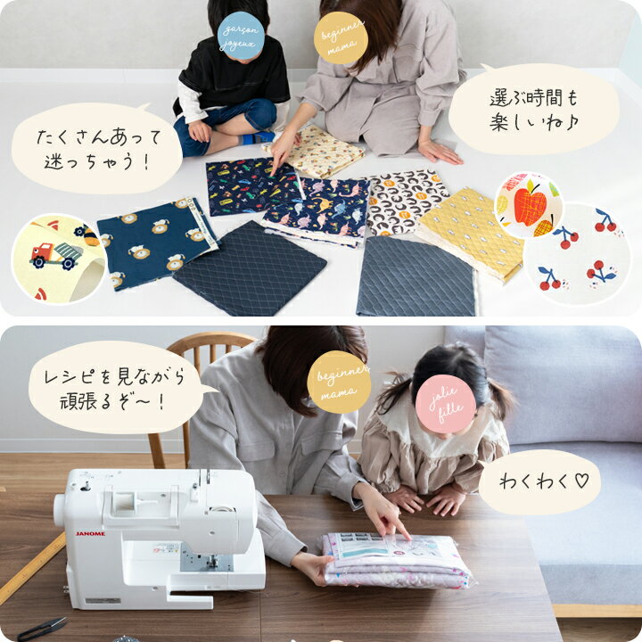 ◆30%OFF BLACK FRIDAYクーポン対象【11/20(木)15:00〜12/1(月)08:59まで】 ◎イベント会場はこちら◎ \生地の単品購入はこちら/ \完成済み既製品もございます/ 手づくりキット 入園入学6点セット 入園入学必須のアイテムが1セットで6点作れる手づくりキット。 オリジナルデザインで同柄のキルティング生地とコットン生地の他、 布に合わせたミシン糸、カバンの持ち手や巾着ひも、Dカンなどの副資材も キットに入っている、オールインワンセットです。 水通しや地直しなど、ハンドメイド初めてさんでも分かりやすいオリジナルレシピ付き。 レシピには、制作動画を見られるQRコードが記載されており、動画を見ながら作ることができます。 レッスンバッグ・体操着袋・シューズケース・コップ袋・お弁当袋・ナフキンの6点を お揃いデザインで仕上げましょう。 ■ スペック セット内容 入園入学6点セット(手づくりキット) ・キルティング生地:生地幅×85cm前後 ・コットン生地:生地幅×60cm前後 ・副資材セット『KIYOHARA 通学基本パーツセット』 (テープ1巻/丸ヒモ1巻/25mmDカン1個/ループエンド5個/5アイテム作れるレシピ) ・シャッペスパンミシン糸 1個(200m巻/普通地用) ・デコレクションズオリジナルレシピ オリジナルレシピ内容 ・各アイテムの作り方 ・裁ち方図 ・水通し、地直しの仕方 ・園指定サイズへの変更の仕方 ・柄に向きがある生地の処理 ・用語解説 ・各パーツの印のつけ方 ・配色布のつけ方〈別売オプション〉 ※サイズを大きくする場合、生地が足りなくなる可能性がございます。 副資材セット封入レシピ内容 ・レッスンバッグ・体操着袋・シューズケースの作り方 ・お弁当袋・コップ袋の作り方 完成サイズ レッスンバッグ 幅:約40cm×高さ:約30cm 体操服入れ 幅:約30cm×高さ:約35cm シューズケース 幅:約17cm×高さ:約26cm×マチ:約4cm 筒回り:約42cm お弁当入れ 幅:約27cm×高さ:約17cm×マチ:約13cm 底幅:約14cm コップ入れ 幅:約16cm×高さ:約18cm ナフキン 約45cm×45cm ※おおよその仕上がりサイズ レシピ難易度 ★★(ビギナーさん向け)⇒レベルに合わせて選べるレシピ付き商品一覧へ 注意事項 ・柄の出方は一点ずつ商品ごとに異なります。動物や花が途中で切れる場合がございます。 ・生地の耳(白地に生地名・メーカー名などが記載されている部分)が含まれます。 ・生地のサイズは裁断上、前後する場合がございます。サイズは毎回寸分違わず絶対に正確なものではありません。 商用利用 不可 納品書 当店では、お届けの商品に領収書・納品書を同封しておりません。 発送完了メールにて、ご購入商品一覧を記載した領収書兼納品書のダウンロードURLをご案内しております。 その他 ・ご使用のモニタ環境により、商品画像の色味が実際のものと若干異なる場合がございます。 ・在庫管理システムにより複数店舗で在庫を共有しており、ご注文のタイミングによっては在庫が確保できない場合がございます。 配送方法 宅配便(送料無料) ※この商品と巻き芯対応チケット対応商品との「巻き芯」での同梱はできかねます。「巻き芯対応チケット」を買い物かごから削除してご購入ください。 ⇒よくあるご質問はこちら ⇒生地の品質について ⇒ランチセット手づくりキットはこちら \巾着・ナフキンが5日分作れるはぎれセットもおすすめ/ ≪入園入学準備のアイディアがいっぱい!入園入学準備特集こちら≫