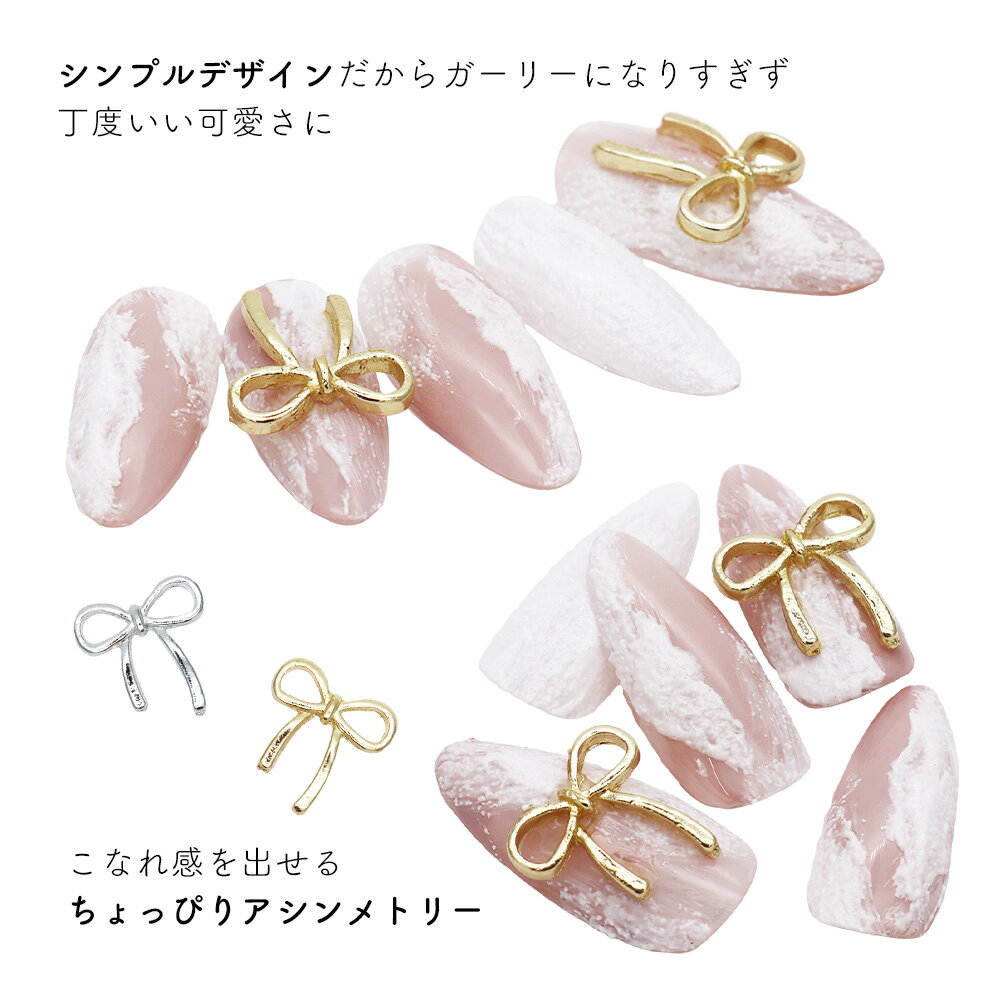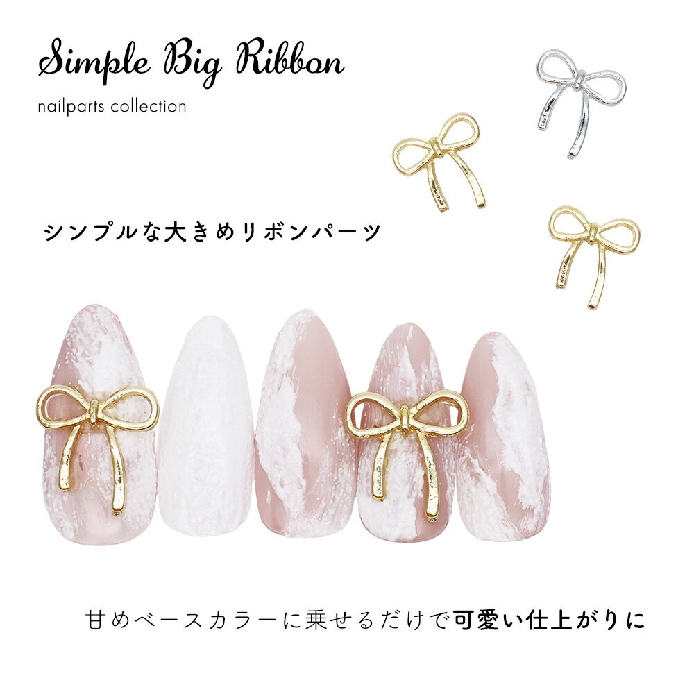 ネイルパーツ シンプルビッグリボンパーツ [ゴールド 金/シルバー 銀] 全2色 5個入り セルフネイル ジェルネイル 耳つぼ
