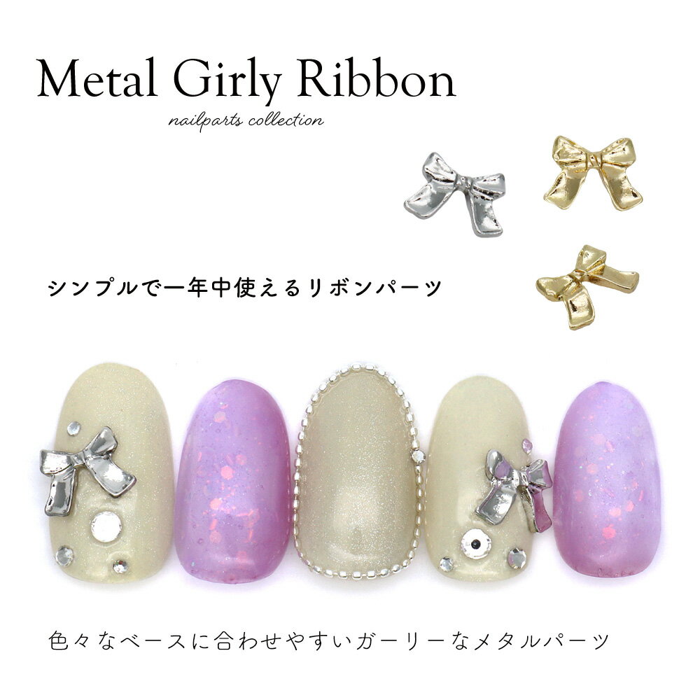 【半額クーポン配布】12/4(木)19時開始 ネイルパーツ メタルガーリーリボンパーツ [ゴールド 金/シルバー 銀] 全2色 3個入り ジェルネイル 耳つぼ