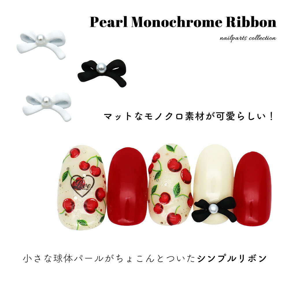 ネイルパーツ パール付きモノクロリボンパーツ [ブラック 黒/ホワイト 白] 全2色 3個入り セルフネイル ジェルネイル