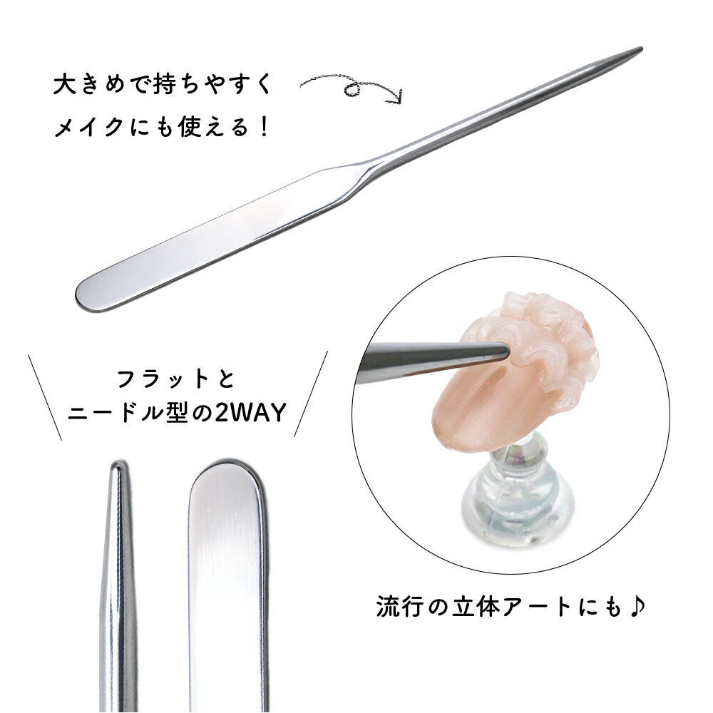 本商品はご注文タイミングやご注文内容によっては、購入履歴からのご注文キャンセル、修正を受け付けることができない場合がございます。 特徴 様々な使い方が出来て便利! 『2wayスパチュラ』が新登場〇゜ ジェルの撹拌やオリジナルのカラー作りに♪ ラメなどの調合にも最適◎ 流行の立体ネイルアートにも♪ フラットとニードル型の2WAY♪ 大きめで持ちやすくメイクにも使える! サイズ 長さ 約16cm 幅 約1cm(最長部) 1本入り ネコポス 発送可能 その他注意事項 ・製造の都合上、バリや欠け・汚れが生じている場合がございます。 ・フチで手を切らない様にご注意下さい。 ・お使いのブラウザや、画面設定により商品のカラーが異なって見える場合がございます。 ■ネコポスをご利用の場合のご注意■ ・ネコポスは手渡しではなく、ポストへ直接投函となります。 その為、代金引換や日時指定は出来ません。 ・追跡サービス有り。 ・ 配達時の欠損・盗難・不達・延着など保証がございません。 詳しくは配送についてをご確認の上ご利用くださいますようお願い申し上げます。