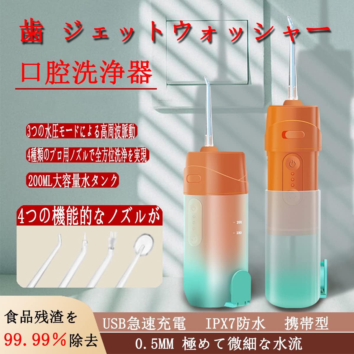 口腔洗浄器 歯ジェットウォッシャー 口腔洗浄機 携帯型 ポータブル歯科用口腔洗浄器 プロのウォーターフロッサー 歯クリーナー USB充電式 3種類モード 240ML 大容量 IPX7防水 電動デンタルフロスピック