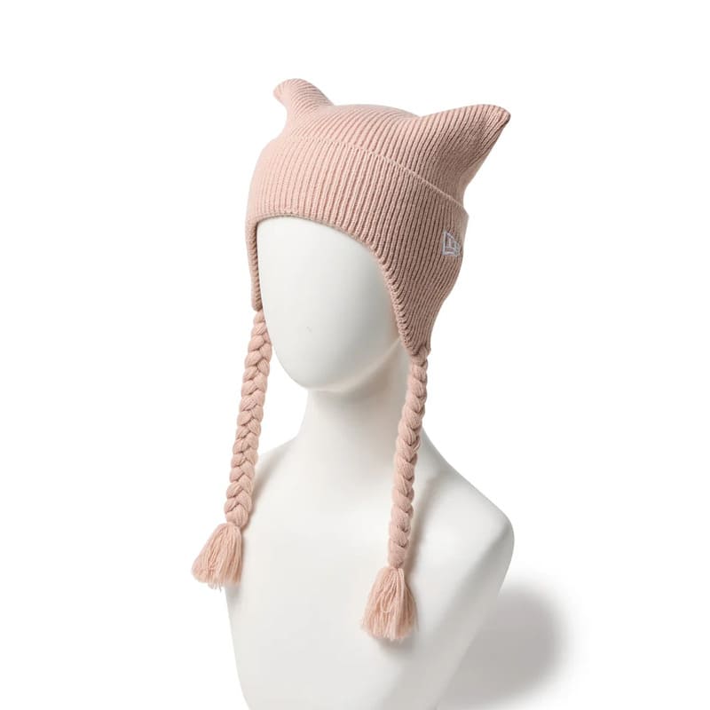 NEWERA ニューエラ 正規品 キッズ スクエア ニット帽 フラップ 耳当て 猫耳 ネコ耳 ねこ耳 ニットキャップ 帽子 CAP キャップ 子供用 男の子 女の子 ユニセックス ピンク 黒 ブラック 14671668 14671669