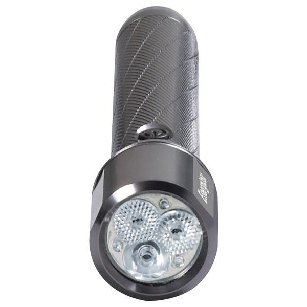 ●エナジャイザー独自の技術を搭載したハンドライト。 ●LED×3灯使用。 ●スイッチ/ハイモード ⇒ パワーセーブモード ⇒ 緊急ストロボモード ⇒ 消灯。 ●スイッチの長押しで、鮮明なスポットライトから広域なエリアライトまでワンボタンで無段階に自動調節が可能。 ●3LEDライト部の1ライト部をレーザーエッジ加工することで、近接で広い範囲を光で網羅できる「ライトフュージョンテクノロジー」を進化させた、エナジャイザーならではの機能「Max Viz テクノロジー」技術を新搭載。 ●近距離・遠距離どちらにも強いハンドライト。 ●優れた耐久性のアルミ合金ボディ。 ●エナジャイザー独自の技術「デジタルフォーカス」機能(特許技術)を搭載。 スペック ●明るさ:(最大)400ルーメン ●照射距離:115m ●点灯時間:(最大)21時間※パワーセーブモード時 ●防水性能:IPX4(対応防水) ●寸法:W3×H16×D3cm ●質量:108g ●付属品:単3形アルカリ乾電池×2本