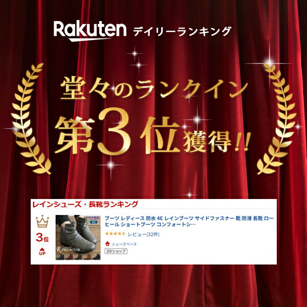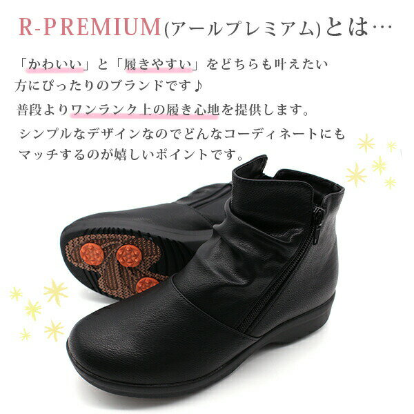 ブーツ レディース 防水 4E レインブーツ サイドファスナー 靴 防滑 長靴 ローヒール ショートブーツ コンフォートシューズ ブーティ 黒 ブラック シンプル シューズ 外反母趾 甲高 通学 R-PREMIUM 556-2853 556-6853