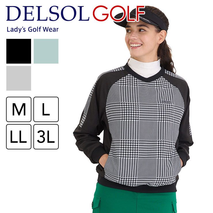 【2025秋冬新作】 7908 メッシュ使い長袖プルオーバー ゴルフウェア レディース デルソル ゴルフ M L LL 3L 秋 冬 春 トップス 長袖 裏メッシュ Vネック サイドファスナー スポーツウェア ゆったり 女子 ホワイト ネイビー グリーン 白 紺 緑送料無料 ゴルフ スポーツ