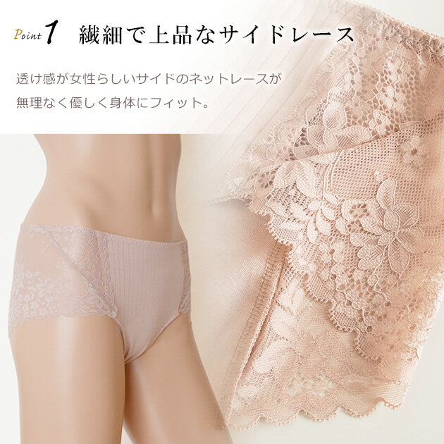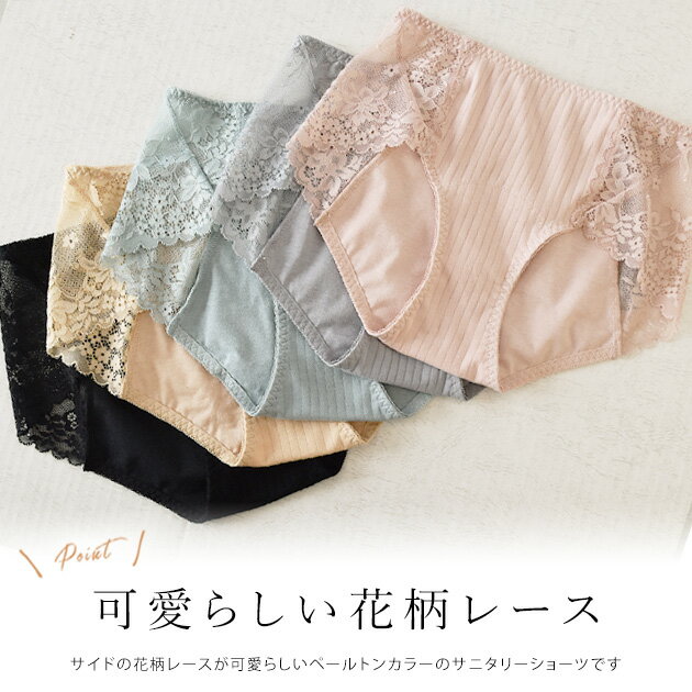サニタリーショーツ レースショーツ フラワーレース 花柄 レース 肌着 下着 薄手 コットン リブ ストレッチ ベージュ ブラック ピンク グリーン グレー 生理用ショーツ ガードル レギュラー