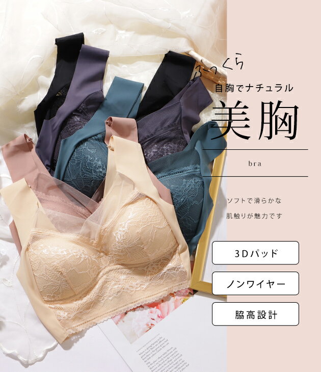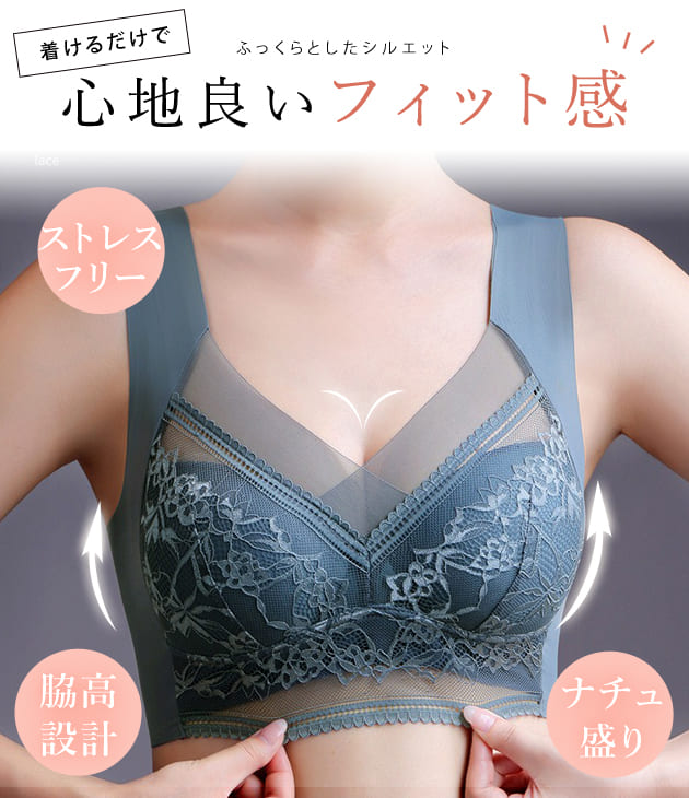 ⇒ 買い物ガイドはこちら■商品説明 フェミニンな花柄レースのブラジャー。 アクセントには透ける素肌がセクシーな、シアー生地を贅沢にあしらいました。 肩への負担がかかりにくい幅広のストラップで、タンクトップ感覚で着ることのできる1枚です。 窮屈さを感じにくいノンワイヤー仕様でありながら、自然な上向きバストを叶えてくれる3Dパッドや脇高設計で、女性らしいボディラインに仕上げてくれるひと品。 通気性が良いのでむれにくく、汗をかきやすい季節にもさらりと快適に着ることが可能です。 リラクシーな着用感は、おやすみ前や休日のリラックスタイム、スポーツなどのアクティブなシーンまで、幅広くお使いいただけます。 ■サイズ 【70】A65 A70 B65 B70 C65【75】A75 B70 B75 C70 C75 D70 【80】A80 B80 C75 C80 D75 E75 F75 【85】A85 B85 C80 C85 D80 D85 E80 E85 F80 F85 ■素材 生地:ナイロン88%、ポリウレタン12% ■モデル情報 - ■原産国 MADE IN CHINA ■注意点 ・色合いはモニター環境により若干の誤差が出ます。 ・サイズは平置きサイズとなりますので測り方により誤差が出る場合がございます。 ・入荷・生産時期により、色、サイズ、素材など多少異なる場合がございます。 ・本製品は生産過程におきまして、生地を織る際の糸の継ぎ目や多少のほつれが生じることがあります。 ・お手頃価格での提供を目指しているため、簡易包装となっており、保管・梱包時にシワが伴う場合がございます。
