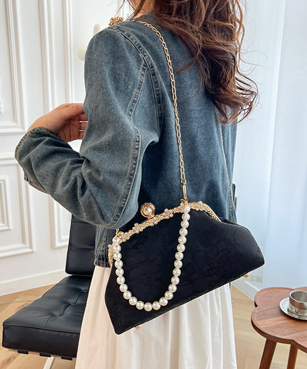 2WAY レース パール パーティー ハンドバッグ ショルダーバッグ レディース オールシーズン がま口 ビジュー フラワー コンパクト パーティー 二次会 結婚式 オケージョン お呼ばれ エレガント フェミニン 上品 フォーマル 女子会 セレモニー