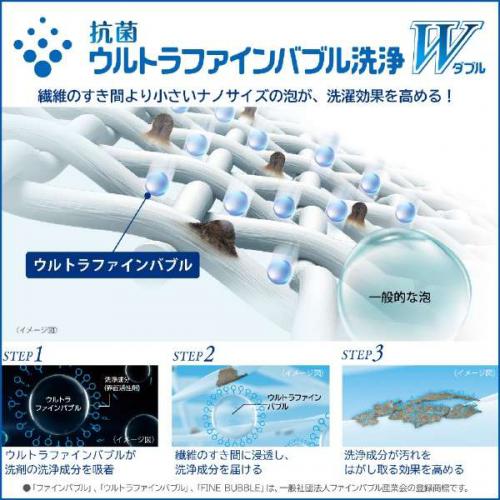 ●繊維の奥から汚れを落とす。 一年後の白さが違う 「抗菌 ウルトラファインバブル洗浄 W」・ウルトラファインバブルで皮脂汚れがたまりやすいエリ元もキレイに・ウルトラファインバブルで衣類の”黄ばみ”を防ぐ・ウルトラファインバブルで落ちにくい食べこぼし汚れもキレイに・ナノサイズの泡が洗剤を吸着して取り除くから、すすぎと柔軟剤効果がアップ!●水道水を抗菌水に変えてお洗濯、部屋干し臭の原因菌を抑える 「Ag+抗菌水」・Ag+抗菌水ユニットは約13年間交換不要●ヒートポンプ除湿乾燥のやさしい温風で、繊維ふっくら、肌ざわりよくスピーディーに仕上げます。 「ふんわリッチ速乾」・低温風で除湿しながらやさしく乾かすから熱による痛みや縮みを防ぎます。・大風量でシワをのばしながら乾燥するのでアイロンがけの手間も省けます。●ボタンを押すだけで洗濯スタート 「液体洗剤・柔軟剤 自動投入」・洗剤を量る手間がなくなり、使いすぎも防ぐ。・洗剤・柔軟剤の置き場所も必要ありません。●忘れがちな槽洗浄のタイミングのめやすを自動でお知らせ! 「槽洗浄めやすサイン)●お洗濯後に自動で槽を乾燥。黒カビの発生を抑え、槽を清潔に保ちます。(自動槽乾燥 カビプロテクト)●高速回転による強力な水流で自動洗浄して槽を除菌。黒カビの派生を抑えます。 「自動お掃除モード)●お洗濯をするたびに大流量ダブルシャワーを利用して糸くずを洗い流す 「ドアパッキン洗浄」●手の届かない「乾燥ダクト」・「熱交換機」を自動で洗浄●ドアタイプ:左開き ※ドアが向かって左側に開きます。●洗濯・脱水容量:12.0kg●乾燥容量:7.0kg●洗浄方式:抗菌ウルトラファインバブル洗浄W●乾燥方式:ヒートポンプ除湿乾燥(ふんわリッチ乾燥)●標準使用水量:洗濯時/約80L、洗濯〜乾燥時/約61L●運転音:洗濯時/約32dB、脱水時/約37dB、乾燥時/約48dB●洗濯時間:約35分●洗濯〜乾燥時間:約96分●消費電力:洗濯時/135W、乾燥時/1190W●消費電力量:洗濯時/約70Wh、洗濯〜乾燥時/約1330Wh/約720Wh(節電)●設置可能防水パン:奥行(内寸)52.0cm以上●寸法:W64.5×H106.0×D72.2cm(給・排水ホースを含む)●質量:約88.0kg●バスポンプ:×