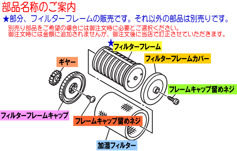 商品名空気清浄機用のフィルターフレーム入数1個適用機種FE-KXF15、FE-KFE15、FE-KFE10メーカーパナソニック、ナショナル、NationalPanasonic別売り商品フレームカバー、フレームキャップ、ギヤー、留めネジは別売りです。同時に御届けご希望の場合には【まとめて購入】ボタンよりご購入ください。関連商品1※カバー・キャップ・ギヤーのみをご希望の場合はこちら【FKA0330155+FKA0330151+FKA7450001】関連商品2※留めネジのみを希望の場合はこちら【FXTB4+12CZ + FXTT4+10CZD】●交換用加湿フィルター ●フィルターフレーム ●プレフィルター ●タンク完成 ●タンクキャップ ●トレー ●除菌ユニット ●フロート ●洗浄剤 ●クエン酸 ●交換用加湿フィルター ●フィルターフレーム ●プレフィルター ●タンク完成 ●タンクキャップ ●トレー ●除菌ユニット ●フロート ●洗浄剤 ●クエン酸 ●交換用加湿フィルター ●フィルターフレーム ●プレフィルター ●タンク完成 ●タンクキャップ ●除菌ユニット ●フロート ●トレー ●洗浄剤 ●クエン酸