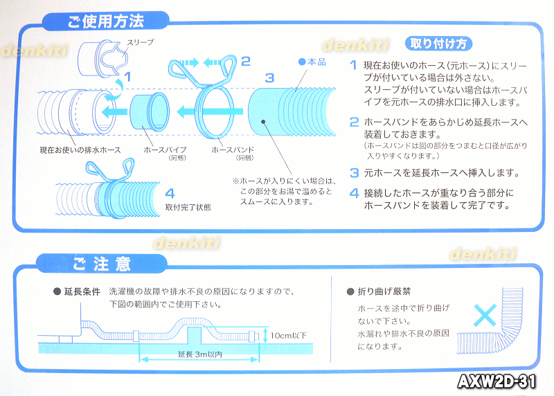 【純正品・新品】パナソニック洗濯機用の延長用排水ホース(1mタイプ)★1個【Panasonic AXW2D-31】※内径30mm用【5】【K】