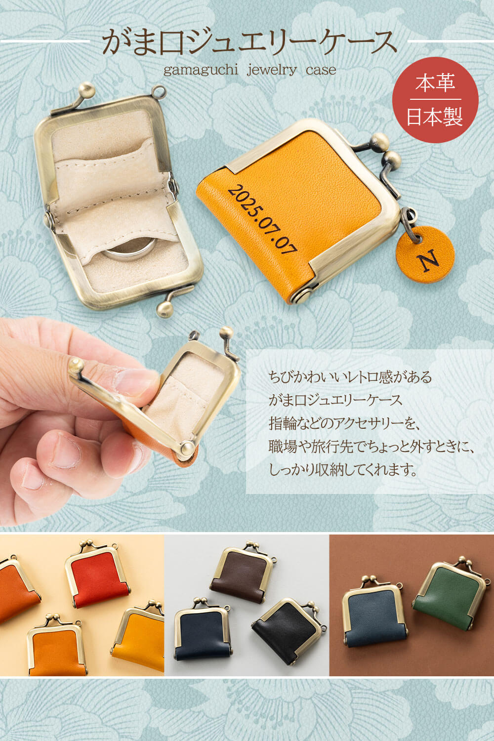 名入れ 栃木レザー 本革 アクセサリーケース ジュエリーボックス 携帯用 持ち運び用 アクセサリー収納 トラベル 旅行 ミニケース 小物入れ ポーチ 日本製 がま口 小銭入れ かわいい レディース 小さい 軽量設計 リングケース 指輪入れ 結婚指輪 母