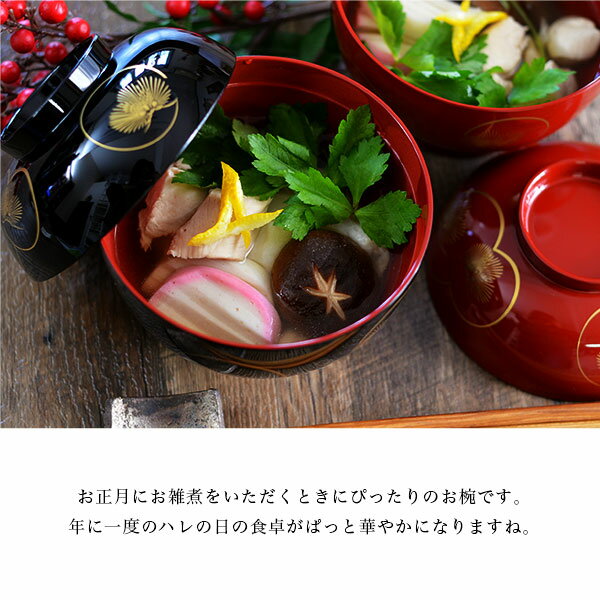 【10%OFFクーポン 本日23:59まで】 雑煮椀 耀松紋 総朱 黒内朱 135mm ペア 蓋付き ( あす楽 お正月 新年 雑煮椀 お椀 お吸い物 味噌汁 おすすめ セット 山中漆器 結婚 出産 内祝い 引き出物 金婚式 誕生日プレゼント 還暦祝い 古希 喜寿 米寿 退職 定年 )