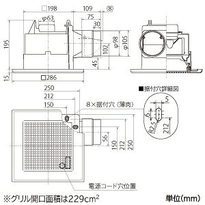 【仕様】●メーカー:三菱●型番:VD13ZC14●商品名:●VD-13ZC13後継機種●天井埋込形●サニタリー用●低騒音形●局所換気タイプ●十字格子タイプ●高密閉風圧式シャッター搭載●速結端子接続●本体スライド脱着式●電源電圧(V):100●消費電力(W):50Hz 13、60Hz 15.5●風量(㎥/h):50Hz 125、60Hz 130●騒音(dB):50Hz 27.5、60Hz 28.5●材質:ボディ プラスチック、ファン プラスチック(シロッコファン)、グリル プラスチック(十字格子)●グリル色調:マンセルNo.0.8GY9.0/0.5(近似色)●接続パイプ(mm):φ100●埋込寸法(mm角):205●羽根径(mm):115.0●質量(kg):1.6●塩ビ管接続時のダクト方向微調整可能(全方向7°)【用途】●浴室、トイレ、洗面所(居間・事務所・店舗)【ご注意】※浴室など湿気の多い所でご使用の場合は必ずアース工事を行ってください。※取り付けには電気工事士の資格をもつ方の工事が必要となります。