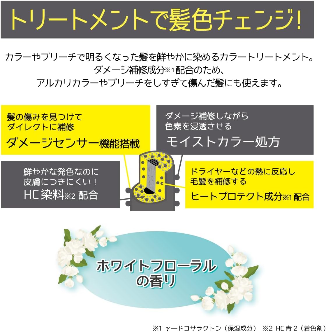 サロンメーカー監修 カラーやブリーチで明るくなった髪を鮮やかに染めるカラートリートメント。 ダメージ補修成分*配合のため、アルカリカラーやブリーチをしすぎて痛んだ髪にも使えます。 *γ-ドコサラクトン(保湿成分)