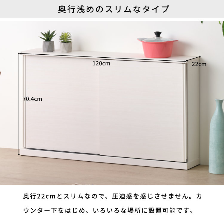 カウンター下収納 スリム 食器収納 チェスト 引出 食器棚 スリム キッチン収納 カウンター 台所 台所収納 棚 キッチンカウンター 薄型 シンプル 幅120cm 奥行22cm 高さ70cm ホワイト 白 ニーベ NIEVE