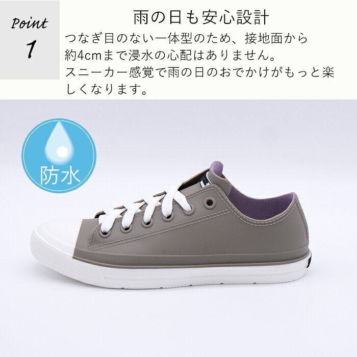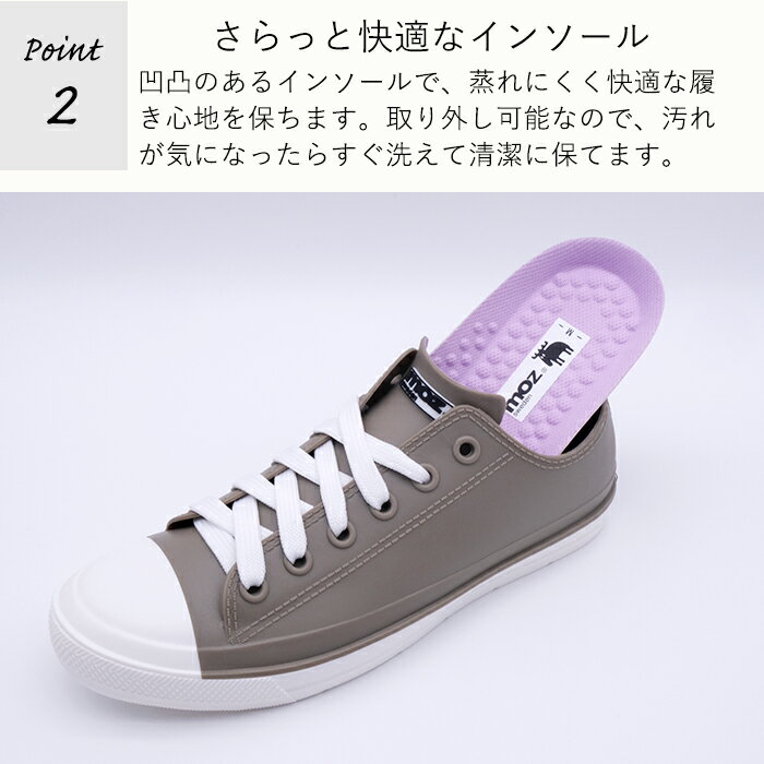 他にもかわいくて履きやすいシューズいろいろ! mozレインシューズスニーカーハイカットはこちら 雨の日を楽しく快適に、moz レインシューズスニーカー 雨の日も安心設計 つなぎ目のない一体感のため、接地面から約4cmまで浸水の心配はありません。 スニーカー感覚で雨の日のお出かけがもっと楽しくなります。 さらっと快適なインソール 凹凸のあるインソールで、蒸れにくく快適な履き心地を保ちます。 取り外し可能なんで、汚れが気になったらすぐ洗えて清潔に保てます。 ペタペタしない履き心地 内側にはさらっとしたメリヤス生地を使用。 肌が当たってもペタペタしないので、履き心地快適に使えます。 底面にはすべり止め加工 底面にはすべり止め加工が施されているので、路面が滑りやすい雨の日でも安心です。 ■商品スペック 対応サイズ Sサイズ:約22.0〜22.5cmMサイズ:約23.0〜23.5cmLサイズ:約24.0〜24.5cmLLサイズ:約24.5〜25.0cm 素材 PVC 生産国 中国 ※商品画像はできる限り実物の色に近づけるよう徹底しておりますが、お使いのモニター設定や、お部屋の照明等により実際の商品と色味が異なる場合がございます。予めご了承頂きますようお願いいたします。 2025秋冬新商品が登場! ぬいぐるみチャームに新色が仲間入り! パタッとすのこが使いやすくなってリニューアル 寒い季節に!あったかアイテム特集 〇新生活や模様替えに!クッションシリーズ 〇LINEお友だち登録で10%オフクーポンプレゼント! 〇1,000円ポッキリアイテムはこちらmozレインシューズスニーカーハイカットはこちら