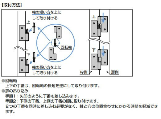※image photo ●摺動部と軸の端を樹脂でカバーしているため、金属同士の接触による摩耗・金属粉の飛散を防止します。 ●回転軸はリブ付きのため、扉を取り外したときに回転軸が脱落しにくい構造です。 ●各種メーカーのアルミフレームに取り付けできます。 【用途】 ●半導体製造関連、アルミフレーム、住設など 【取付方法】 ●回転軸 上下の丁番は、回転軸の長短を逆にして取り付けます。 ●扉の吊り込み 手順1:矢印のように丁番を差し込みます。 手順2:下側の丁番、上側の丁番の順に取り付けます。 2つの丁番を同時に差し込む必要がなく、軸と穴の位置合わせにかかる時間を軽減できます。 【回転軸の構造】 回転軸はリブ付きのため、扉を外したときに回転軸が脱落しにくい構造です。 扉を再び取り付ける時は、回転軸を外して、枠側の丁番に付け直してください。 【仕様】 丸穴タイプ、左用 【材料】 (1)本体:アルミニウム合金 (2)回転軸:ステンレス鋼(SUS303)、ポリアセタール(POM) (3)キャップ:ポリアセタール(POM) 【色】 (1)本体:- (2)回転軸:ホワイト (3)キャップ:ホワイト 【仕上】 (1)本体:シルバーアルマイト処理マット調(加工面素地) (2)回転軸:- (3)キャップ:- 【サイズ】 W?:W?:W?:W?:W?:W?:d?:d? 57:25:32:16:21:40:5.5:5.5 【耐荷重N】78 /2ヶ 【耐荷重kgf】8 /2ヶ 【注文コード】170-018-214 【品番】AS-HG-AL-NL3040 製品内容は、部品としての品質範囲です。この部品を使用した最終製品の機能・性能・安全を保証するものではありません。 ※画像はイメージです。 ※パッケージ、仕様、品番などの変更が予告なく変更される場合が御座います。 カテゴリー