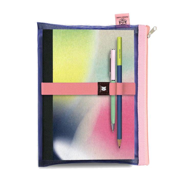 お気に入りのノートに、お気に入りのペンをさして。 A4、A5、A6サイズのノートに使えるノートバンドです。 2本分のペンホルダーがついていて実用性もばっちりです。 打ち合わせはもちろん、カラーリングにちなんで旅のお共にも。 ダイアリーや手帳、書籍のブックバンドとしてもおすすめです。 カラーは土地をモチーフにしています。 MEXICO=オレンジ / ATHENS=ブルー / HONOLULU=ライトブルー TOKYO=ピンク / DUBLIN=グリーン / LOS ANGELES=イエロー/ GOTHAM=ブラック シンプルながらもキレイなカラーリングがパピエティグルらしいデザインです。 サイズ:伸ばさない状態で半径14cm A6~A4までのノートでお使い頂けます。 備 考:ペンホルダー2つ付 ●ネコポス便対応商品です。 ●その他パピエティグルのアイテムはこちらからご購入いただけます。 【PAPIER TIGRE】 トラのマークでおなじみのパリで人気のプロダクトブランド「PAPIER TIGRE/パピエ ティグル」。2011年にパリ・マレ地区にて誕生以来、特徴的な色使いとさまざまなインスピレーションから生まれるグラフィックで人気を集め、2017年9月にはパリに続く2つ目の直営店「PAPIER TIGRETOKYO」が東京・日本橋にオープンしました。デスクまわり、家の中、文章をやりとりするシーンなどで活躍する楽しいアイテムをパリのオフィスからお届けします。