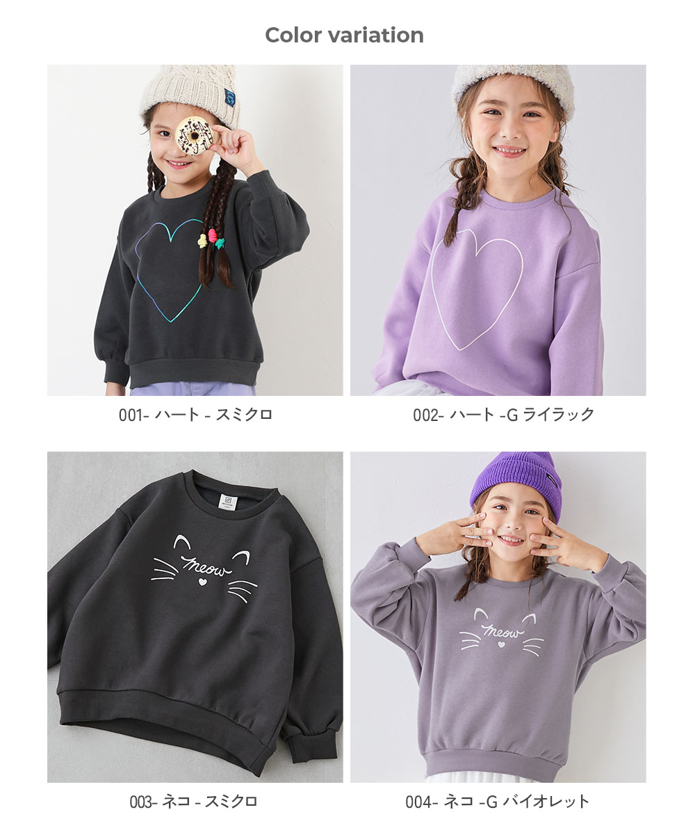 メーカー希望小売価格はメーカーサイトに基づいて掲載しています→こちら 掲載サイト→こちら 販売元情報→こちら 商品詳細 シンプルなものから、女の子らしいデザインまで。 女の子の大好きが詰まったデビラボが大集合。 ■シリーズ 一緒にえらぶって楽しい 今日はどんな服を着よう? 一緒に服をえらぶ時間は、親子の大切なひと時。 デザインやシルエット、素材など、バリエーション豊富に取り揃えたデビラボプリントシリーズなら、えらぶ楽しさがもっと広がる。 さあ、今日はどれをえらぶ? ■素材 ふっくらとした厚みが魅力的な、裏起毛素材 ふんわりと柔らかな肌ざわりが心地よい素材。 しっかり厚みがありながら、軽い着心地が特徴です。 肌寒い日でも温かく過ごせます。 伸縮性:ふつう ■スタイリング トップスを主役に、パンツやスニーカーといったカジュアルなアイテムとのコーディネートがおすすめ。 いつものコーデに程よく甘さをプラスしてくれるアイテムです。 サイズ/スペック サイズ 着丈 身幅 袖丈 肩幅 90cm 38 38 24.5 35 100cm 41 40 27 37 110cm 44 42 31 39 120cm 47 44 35 41 130cm 51 46 39 43 140cm 55 48.5 43.25 45.5 150cm 59 51 46.5 48 160cm 62 53.5 50.25 50.5 »サイズガイド ■素材・仕様 本体:綿55% ポリエステル45% / リブ:綿95% ポリウレタン5% ■生産国 CHINA ■仕様 洗濯方法 洗濯機洗い可(デリケート洗い) / 漂白剤使用不可 / 乾燥機使用不可 / 日陰つり干し/ 洗濯ネット使用 ご注意事項 ・摩擦や水、汗などで色が移ることがあります。ご注意ください。 ・平置きにて採寸しているため、サイズや形に多少の誤差が生じる場合がございます。あらかじめご了承ください。 ・生産時期により、多少色味が異なる場合がございますが、素材・サイズ等の品質に違いはございません。 ・ご使用のパソコンやブラウザの環境により、実際の色とは多少異なる場合がございます。
