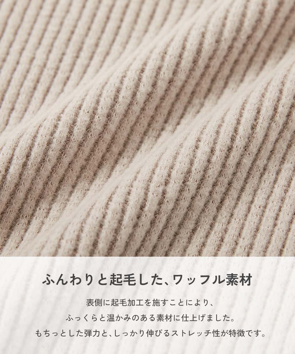 メーカー希望小売価格はメーカーサイトに基づいて掲載しています→こちら 掲載サイト→こちら 販売元情報→こちら 商品詳細 表面感のあるワッフルニット調のトレーナー。 程よいゆるっとシルエットで、いつものコーデがワンランクアップします。 ■素材 ふんわりと起毛した、ワッフル素材 表側に起毛加工を施すことにより、ふっくらと温かみのある素材に仕上げました。 もちっとした弾力があり、しっかりストレッチします。 伸縮性:あり ■スタイリング 1枚できるのはもちろん、インナーをのぞかせたレイヤードスタイルもおすすめ。 トレンド感のあるボトムスを合わせれば、こなれ感のあるコーディネートにも仕上がります。 サイズ/スペック サイズ 着丈 身幅 袖丈 肩幅 100cm 42 38 27 41 110cm 45 40 31.5 43 120cm 48.5 42 35.5 45 130cm 52 44 39.5 47 140cm 56 47 44 50 150cm 61 50 50 53 160cm 66 53 52.5 56 »サイズガイド ■素材・仕様 綿95% ポリウレタン5% ■生産国 CHINA ■仕様 洗濯方法 洗濯機洗い可(デリケート洗い) / 漂白剤使用不可 / 乾燥機使用不可 / 日陰つり干し/ 洗濯ネット使用 ご注意事項 ・摩擦や水、汗などで色が移ることがあります。ご注意ください。 ・平置きにて採寸しているため、サイズや形に多少の誤差が生じる場合がございます。あらかじめご了承ください。 ・生産時期により、多少色味が異なる場合がございますが、素材・サイズ等の品質に違いはございません。 ・ご使用のパソコンやブラウザの環境により、実際の色とは多少異なる場合がございます。