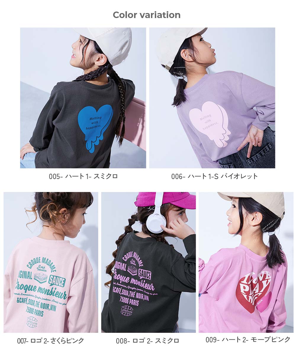 メーカー希望小売価格はメーカーサイトに基づいて掲載しています→こちら 掲載サイト→こちら 販売元情報→こちら 商品詳細 ちょっぴり背伸びしたい女の子にぴったりのおしゃれなデザイン。 着るだけでいつものコーデがワンランクアップ。 袖がリブ仕様なので、手を洗うときや活動的なシーンで袖まくりする際にも役立ちます。 ■シリーズ 一緒にえらぶって楽しい 今日はどんな服を着よう? 一緒に服をえらぶ時間は、親子の大切なひと時。 デザインやシルエット、素材など、バリエーション豊富に取り揃えたデビラボプリントシリーズなら、えらぶ楽しさがもっと広がる。 さあ、今日はどれをえらぶ? ■素材 素肌に心地よい、綿100%素材 綿100%なので吸汗性が良く、汗ばむ季節にも快適な着心地。 丈夫で型崩れしにくいため、ご家庭でのお洗濯にも適しています。 伸縮性:ふつう ■スタイリング ラインパンツなどトレンド感のあるボトムスと合わせるのがおすすめ。 大人っぽいカジュアルコーデを楽しんでみてください。 サイズ/スペック サイズ 着丈 身幅 袖丈 肩幅 90cm 40.5 37.5 24.5 36 100cm 44.5 39 29 37 110cm 47.5 41 33.5 39 120cm 50.5 43 37.5 41 130cm 53.5 45 41.5 43 140cm 57.5 48 46 46 150cm 61.5 51 52 49 160cm 65.5 54 54.5 52 »サイズガイド ■素材・仕様 本体:綿100% / リブ:綿95% ポリウレタン5% ■生産国 CHINA ■仕様 洗濯方法 洗濯機洗い可(デリケート洗い) / 漂白剤使用不可 / 乾燥機使用不可 / 日陰つり干し/ プリント部分アイロン禁止 ご注意事項 ・摩擦や水、汗などで色が移ることがあります。ご注意ください。 ・平置きにて採寸しているため、サイズや形に多少の誤差が生じる場合があります。あらかじめご了承ください。 ・生産時期により、多少色味が異なる場合がございますが、素材・サイズ等の品質に違いはございません。 ・ご使用のパソコンやブラウザの環境により、実際の色とは多少異なる場合がございます。