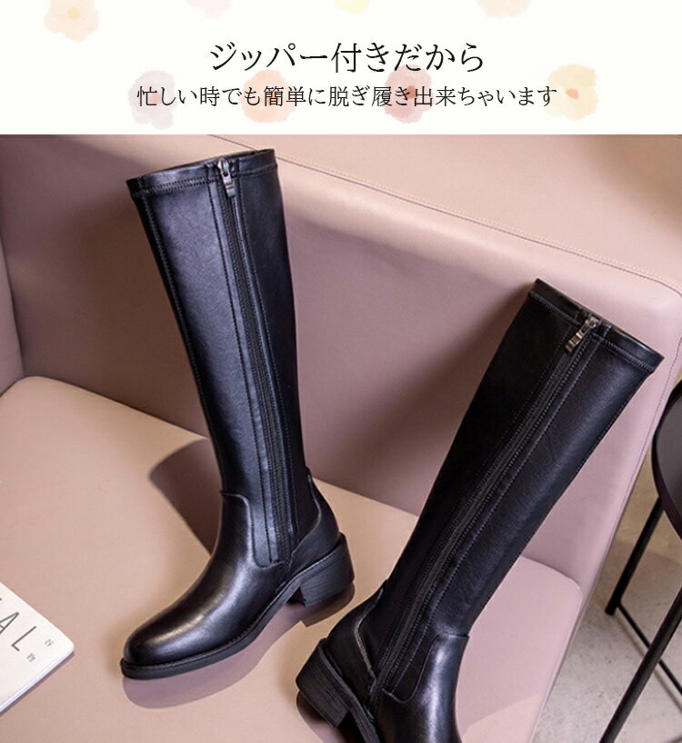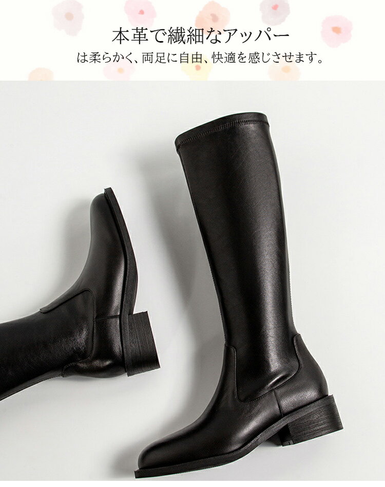 ロングブーツ 本革ジョッキーブーツ サマーブーツ スクエア靴 ロングブーツ キレイめローヒール サイドジッパー 上品 本革 大きいサイズ マーティン サマーブーツ 通気性 インヒール ローヒール 脚長アップ 21.50cm 25cm