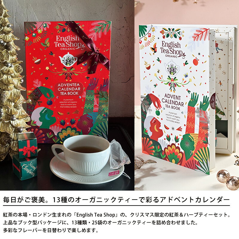 EnglishTeaShop エクスクルーシブ・アドベンティーカレンダーブック・レッド ホワイト 13種25袋入り 紅茶 ハーブティー オーガニック 有機JAS ギフト プレゼント