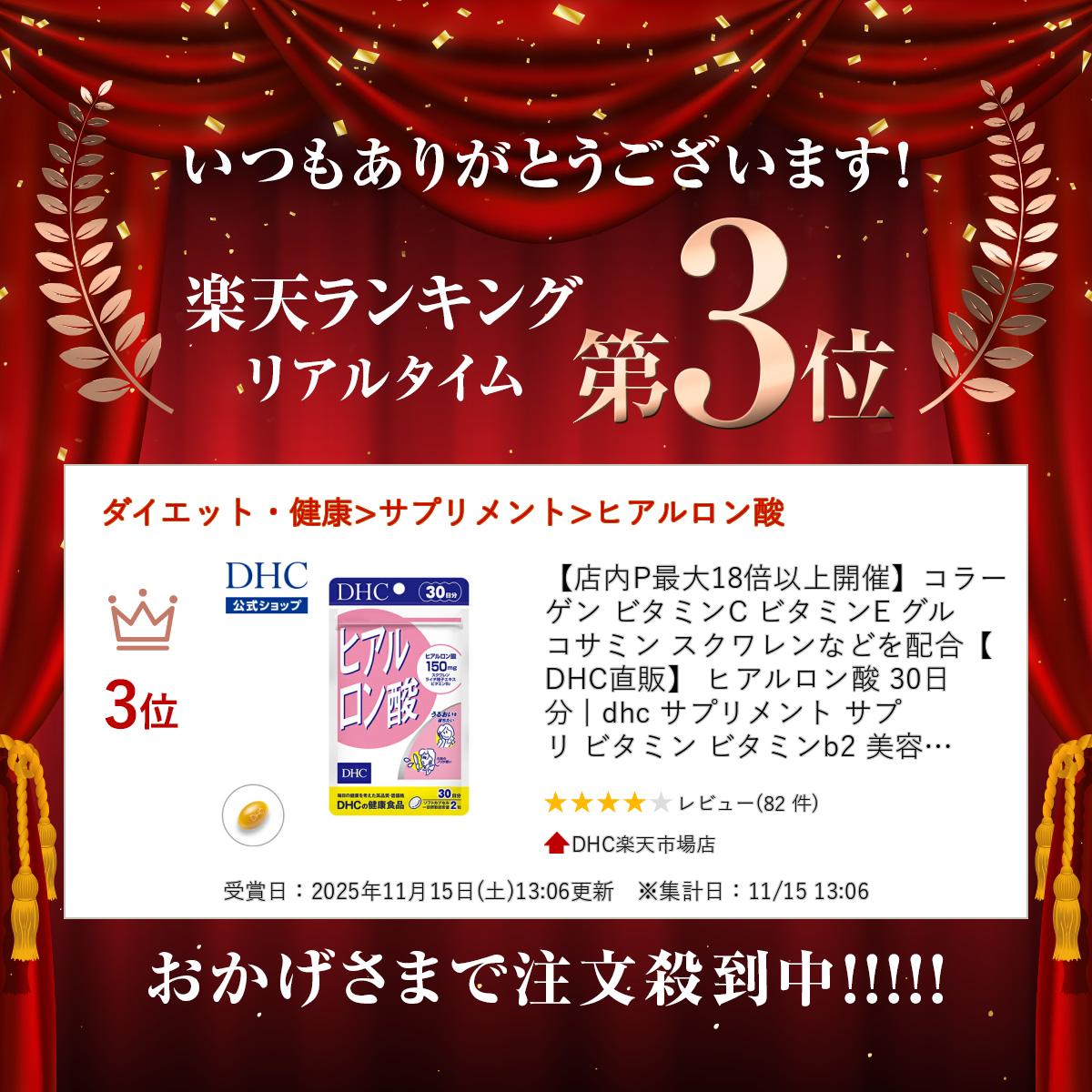 【店内P最大18倍以上開催】コラーゲン ビタミンC ビタミンE グルコサミン スクワレンなどを配合【DHC直販】 ヒアルロン酸 30日分 | dhc サプリメント サプリ ビタミン ビタミンb2 美容 ビタミンb 美容サプリ スクワレン 肌 スキンケア インナーケア ビタミン剤 ハリ 弾力 VC