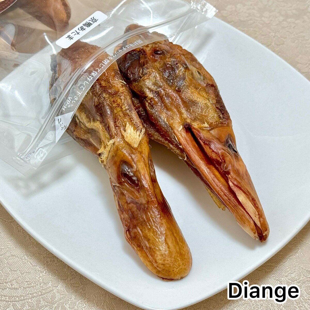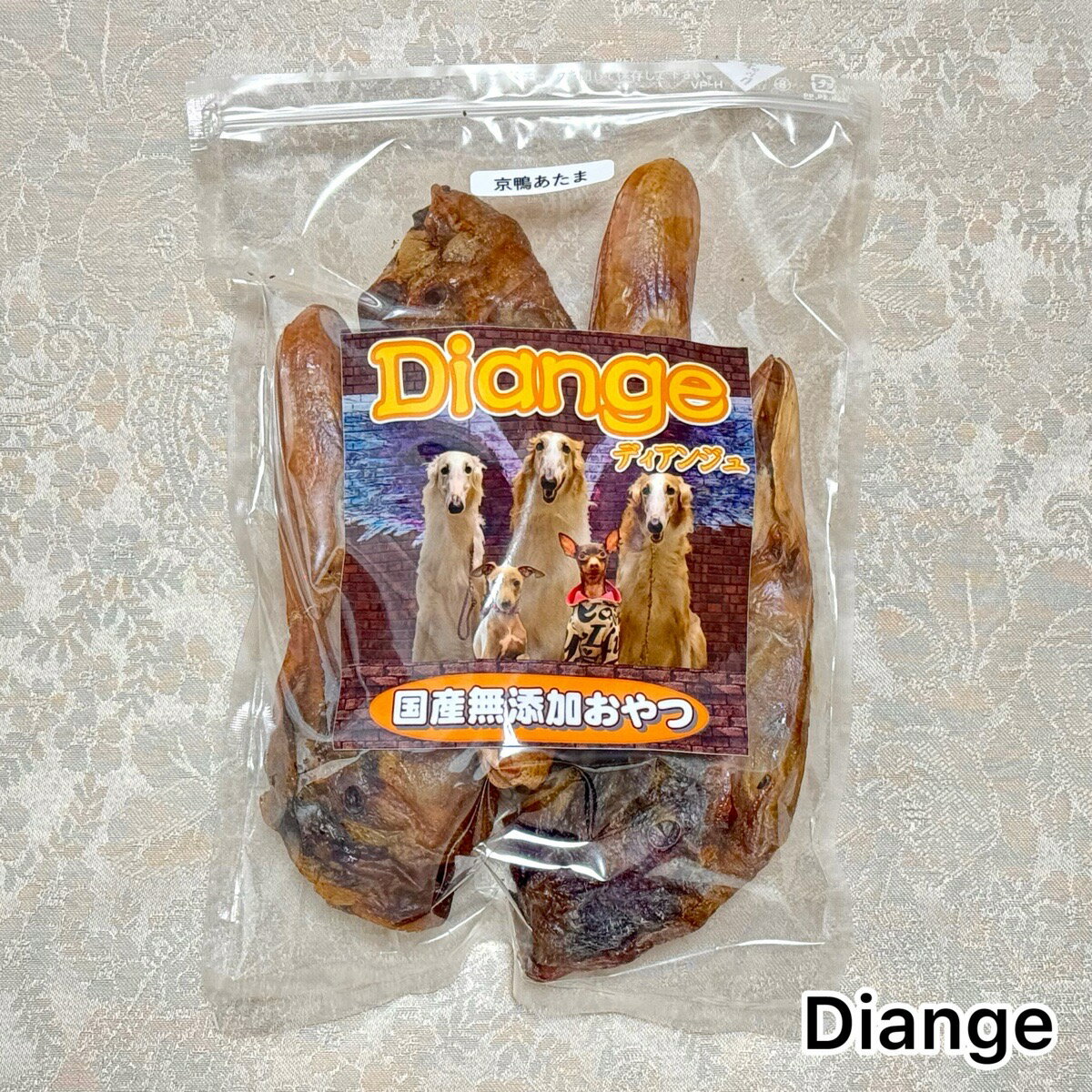 商品情報商品名京鴨あたま原材料京鴨頭原産国日本内容量220g内容成分袋に記載100gあたりカロリー382.1kcal賞味期限製造日より1年保存方法直射日光を避けて冷暗所に保存添加物を使用してませんので開封後は冷暗所に保存し賞味期限に関わらずなるべくお早めにお与えください。販売者株式会社Diange神奈川県横浜市青葉区美しが丘4-5-2TEL045-514-6232ご注意事項●与える際はペットから目を離さないでください。●お子様がペットに与える際は安全の為に保護者の立会いのもとお与えください。●天然の原料を使用し添加物を使用しないため色・形・硬さ・匂いに若干の違いがあります。●賞味期限内でも保管状況によってはカビが発生する場合もございます。●少し変色したり硬くなることもありますが、品質には問題はありませんので安心して与えられます。●生後半年以下の幼犬には与えないでください。●イベント出店や他のネット販売などで在庫数に変動がございます。与え方●ペットの食べ方や習性に合った大きさにカットして与えてください。●犬種・体重・年齢・性質・運動量・体調などによって異なりますので状況を見て与える量を調整してください。●ペットにアレルギーがある場合は必ず原材料をよく読んでかかりつけの獣医師に相談の上与えてください。大型犬 小型犬 国産 人間用食材 無添加 おやつ 京鴨 ささみ 安心 安全 ご褒美 ご馳走特記事項画像はイメージです。【大容量】【送料無料】京鴨 あたま ジャーキー 220g京鴨 犬 の おやつ ささみ 鴨 の 餌 カモ エサ 無添加ドッグフード 安心 犬おやつ おやつ 犬餌 犬のおやつ 犬用おやつ 無添加 国産 大袋 珍しい京鴨の頭です!! 京鴨の頭をじっくり焼き上げました!! じっくり焼き上げてあるので骨までボリボリ食べて頂けます!手でザクッと割ることもできるので小型犬さんでも美味しく食べて頂けます!ビタミンの含有量が他の食材に比べて多い食材です。なかでもビタミンB2が豊富!!ビタミンB2はエネルギー代謝に関与する栄養素で、皮膚や粘膜の健康を保つ効果が期待できます!! 骨だけでなくクチバシまでボリボリ食べられる! 濃厚な京鴨の味がクセになる!! 小型犬でも美味しく食べられる! 珍しいあるおやつをお探しの方に!! 面白いあるおやつをお探しの方に!! インパクトのあるプレゼントをお探しの方に!! こんにちは。店長のイノウエです。当店ではワンちゃん・ネコちゃんの骨格・筋肉・内臓を保つために国産の厳選した人間用食材を使用した保存料・着色料・香料一切無添加のオヤツを取り扱っております。素材の良さと新鮮さを100%生かした製法で一つ一つ丁寧に手作りされています。栄養価も高く美味しいオヤツになってます。人間も安心して食べて頂けます。特殊製法と独自のパック詰めにより長期保存も可能です!! 1