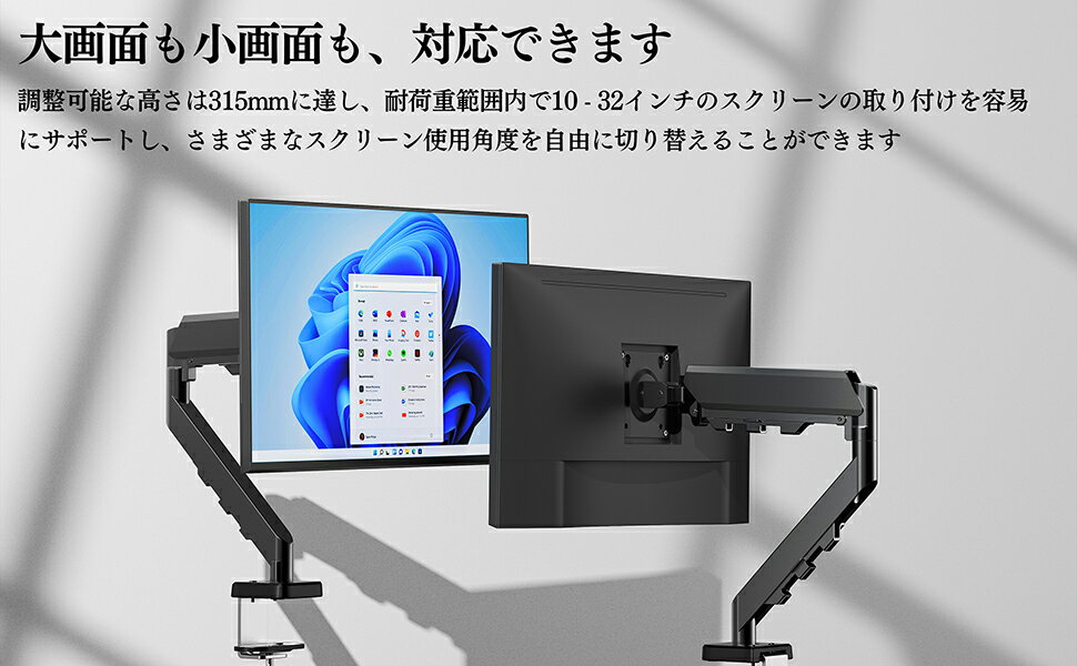 【最大2,000円オフ&P10倍】液晶ディスプレイ アーム 卓上 モニターアーム モニターアーム 10〜32インチ 耐荷重9Kgまで ディスプレイアーム 高さ調節 角度調節 クランプ グロメット 卓上 パソコン モニターアーム PCモニターアーム モニタースタンド 在宅 リモートワーク