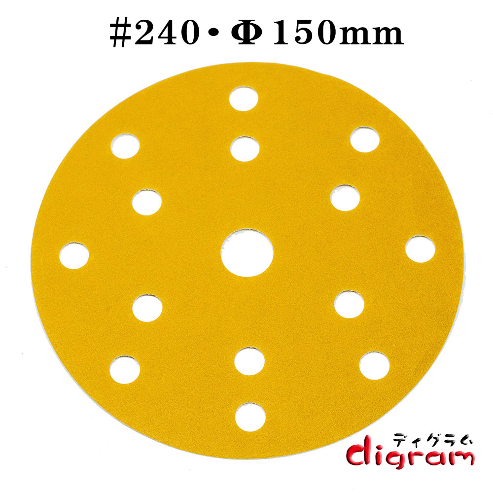 NEWランダム・アクションサンダー用 替えサンドペーパー ☆ディグラムオリジナルブランドとしてOEM発注することで、高品質商品のコストダウンに成功しました。 ☆ペーパーに繊維が練りこまれているので、耐久性に優れドライバーで刺しても簡単に穴が開くこともありません。 ☆やすり面は練のある加工処理がしてあるので、折り曲げても割れにくいのが評価されています。 ☆ダイヤカットと呼ばれる特殊なパターンで砥粒をコーティングしていますので被削物がスムーズに排出され、目詰まりをおこしにくく切削性・耐久性に優れた研磨シート。 ※砥粒の量が一般製品より多く、強靭な研削力が得られます。 ☆やすり部分は、酸化アルミニウム(アルミナセラミックス)ダイヤモンドに次ぐ硬さで、高硬度であり耐摩耗性にも優れています。 更に、電気絶縁性に優れています、高温時においても絶縁性を保ち耐久性に優れています。 [用途] ☆木材・プラスチック、人工大理石、金属の研磨仕上に。金属のさび落とし、塗装はがしに。 (家具職人が好んで使用する耐久性) ☆各電動工具メーカーのマジックテープ式のアクションサンダーに取り付けて、ご使用いただけます。 ☆ランダムサンダー。150mm 15個穴
