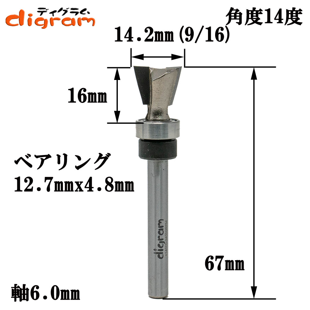 トリマー ビット ダブテイルビット アリ錐 6mm軸 ( 刃径 14.2mm ) Microtungsten carbide 【dm312808】