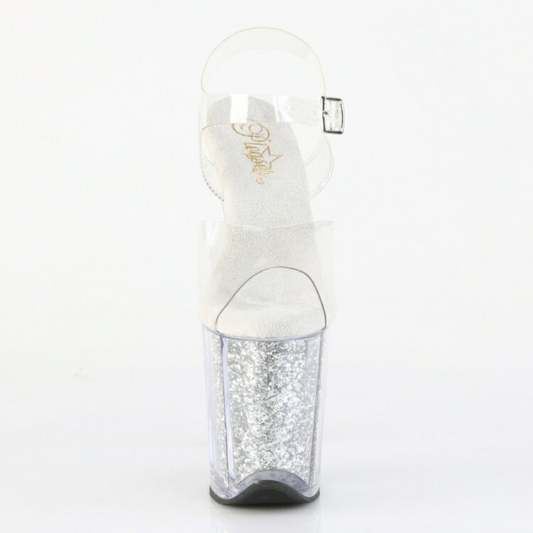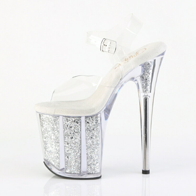 20cm ヒール 厚底 キャバ サンダル Pleaser プリーザー 大きいサイズ 超厚底 ハイヒール ピンヒール クリアヒール ポールダンス アンクル ストラップ キラキラ ラメ クリア シルバー レディース メンズ 20cmヒール 20センチ ヒール フラミンゴ FLAM808G/C/S 即納 取寄 公式
