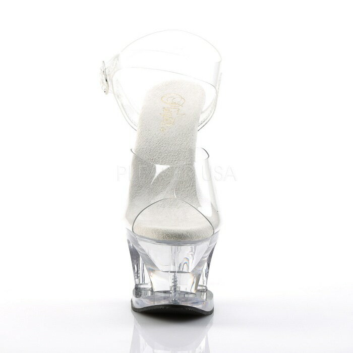 Pleaser プリーザー キャバ ヒール サンダル 厚底 18cm ヒール ハイヒール クリアヒール オープントゥ アンクルベルト 半月 ハーフムーン キャバサンダル クリア レディース メンズ 大きいサイズ 小さいサイズ 靴 女装 コスプレ イベント 衣装 MOON-708 MOON708/C/M 取寄