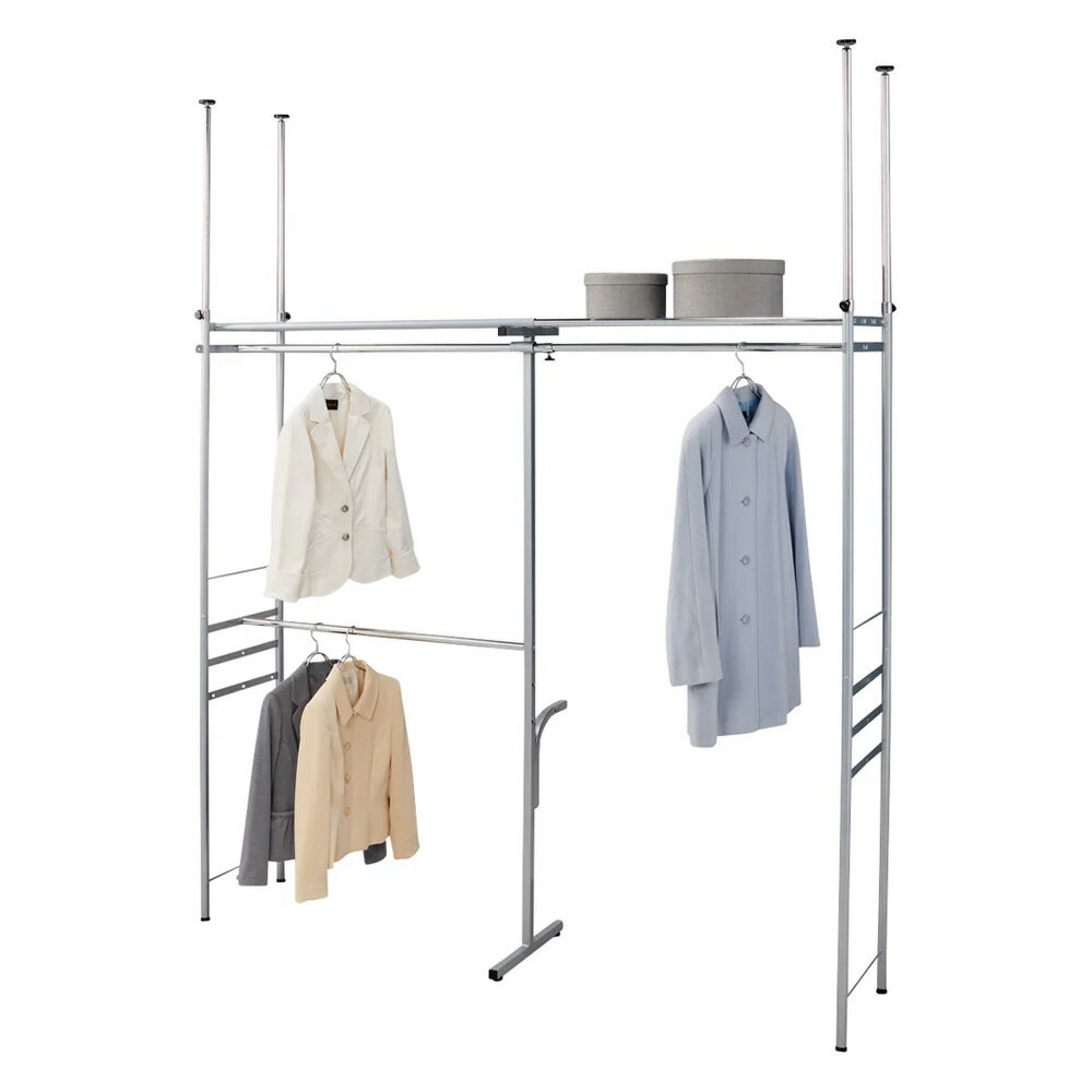 便利なサービスのご紹介商品の仕様・サイズ商品画像の説明 本商品は「ウォークイン突っ張りハンガー 幅111cm〜200cm・ロータイプ(高さ185cm〜245cm)・カーテンなし」です。★★★関連商品★★★ウォークイン突っ張りハンガー 幅111cm〜200cm・ロータイプ(高さ185cm〜245cm)・カーテンなしウォークイン突っ張りハンガー 幅111cm〜200cm・ハイタイプ(高さ218cm〜280cm)・カーテンなしウォークイン突っ張りハンガー 幅111cm〜200cm・ロータイプ(高さ185cm〜245cm)・上下カーテン付きウォークイン突っ張りハンガー 幅111cm〜200cm・ハイタイプ(高さ218cm〜280cm)・上下カーテン付きウォークイン突っ張りハンガー用サイドカーテン (ロータイプ用)ウォークイン突っ張りハンガー用サイドカーテン (ハイタイプ用) 簡単にウォークインクローゼットが作れる人気の突っ張り式ハンガーです。厳しい耐荷重試験をクリアした自信の品質でお手持ちの洋服がたっぷり掛けられます。奥行は43.5cmのスリムタイプ。本体の幅も空間に合わせて伸縮できるので、置きたい場所にぴったり設置できます。対面やL字、コの字置きなど、自由に組み合わせることで間取りに合わせて大容量の収納空間もカスタマイズ可能。ロータイプは梁天井にも対応でき、ウォークインクローゼット内での使用もおすすめです。壁一面が素敵な大量収納ワードローブに!奥行43.5cmの薄型タイプの突っ張りハンガーラックです●クローゼット内で対面使いもできる薄型の大量収納ハンガーラックです。●突っ張り式なので天井まで無駄なく洋服をたっぷり収納することができます。●ロング丈のコートからジャケット、ワンピースなど様々な衣類が収納可能です。上段ハンガーバー耐荷重は約50kgでお持ちの衣類がすっきり収納できます●第三者機関の厳しい耐荷重試験をクリアした自信の品質で洋服がたくさん掛けられます。●上の棚は約80kgまでOK。重たい収納ケースやバッグ、リュックなどを置いても丈夫でグラつきません。●下段のハンガーバーは約12kg。スカートやパンツを掛けるのに十分な強度があります。●下段バーは3段階で高さが調整できるので、メンズのスラックスやロングスカートの丈にも合わせて収納することができます。部屋のスペースに合わせて本体の幅が伸縮できます●突っ張り部分は4本とも別々に高さが調節できるので、天井に複雑な梁がある部屋でもOKです。●家具と家具の間の狭い「すき間」にもぴったり設置することができます。●天井の対応高さは185cm〜245cmなので様々な間取りに設置できます。●足下にはアジャスターが付いているので高さの微調整ができます。リフォームより断然リーズナブルで、造り付け家具よりフレキシブル◆衣類収納のスぺパとコスパ両面ともに優秀な、ウォークイン突っ張りハンガーシリーズ。天井までの高さを生かせる大容量収納を、リフォームよりもぐっと低予算で実現できます。限られた広さでも置ける薄型の奥行43.5cmと、設置場所や衣類の量に合わせて自由に幅伸縮できるのもポイントです。◆置き場所を変更したい時や引っ越しで環境が変わっても、何度でも設置し直してお使いいただけます。頑丈さに加え、暮らし方の変化にフレキシブルに対応できるから、長くお使いいただけます。こんな便利な使い方も!大容量の部屋干しハンガーとして●大型の頑丈な突っ張り式だから、布団もバスタオルも室内で干すことができます。●梅雨時や台風シーズン、秋の長雨、花粉の季節など、一年を通して物干しに困る時季に大活躍。〜発売以来大好評!嬉しい声が届いてます〜●限られたスペースを最大限に活用できるので、買ってよかったです☆ (埼玉県 女性)●これひとつでクローゼット部屋がかなりすっきり片付きました! 上の棚だけでなく、棚の下の部分にいろいろ物を置けるのが、特に気に入っています (宮城県 女性)●この手の商品で、男性用ジャケットが上下段で掛けられるものに初めて出会いました。 (兵庫県 男性)※お買い上げいただいたお客様の個人の感想ですページ下部に画像の説明がございます。一部別売りの商品もございますので、説明分ご確認のうえご注文ください。>画像の説明はこちら<仕様・サイズ■サイズ:幅111cm〜200cm 奥行43.5cm 高さ185cm〜245cm、重さ約18kg■上棚までの高さ:174.5cm■上部ハンガー高さ:166cm■下部ハンガー高さ:64・74・84cm(3段階)■天井突っ張り部直径…約5cm■床接地面アジャスター径…約3cm■本体…スチール(クロムメッキ・粉体塗装)■台湾製■突っ張り式の商品は天井や床の強度を確認の上設置し、収納物を入れてから再度固定の上で、定期的に点検してください。畳やカーペットには適しません。【組み立て時間約60分】【送料マーク:B】この商品の配送料は2500円(税込)です。※沖縄県へのお届けは上記に地域特別配送料2200円(税込)が追加されます。この商品は下記のサービスが選択できます。※組み立て・開梱サービスは日時指定ができません。お届け前に配送所より配達日時のご連絡をさせ