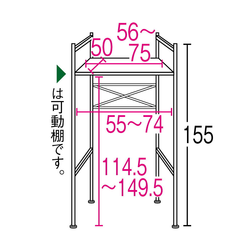 ■ご注意※ステンレス部分にはキズ防止用のフィルム状保護シートが付いている場合があります。 一度剥がしてしまいますと、ご返品をお受けできませんので十分ご注意ください。※天板耐荷重は約25キロです。設置する小型乾燥機や小型洗濯機の総重量(洗濯物の重さも含む)をご確認のうえご購入ください。耐荷重以上の重さのものは載せないでください。 また、設置工事が必要な衣類乾燥機や、ホースのついたガス式の衣類乾燥機には対応しませんのでご注意ください。※説明文中の「再入荷お知らせ登録」は楽天市場にはない機能となります。ご了承くださいませ。置き場に困る小型衣類乾燥機も安心して置ける、天板耐荷重約25kgの頑丈ラック。洗濯機のすぐ上に衣類乾燥機やミニ洗濯機などが配置できるスタンドなので、流れ作業で使えて家事の時短にも!※当商品は、洗濯機を動かさずにラックを設置可能です。【本商品は想定を大幅に上回る売れ行きにより、在庫なしとなってしまう場合がございます。順次生産・入荷をいたしますので、在庫なしの場合はぜひ、再入荷お知らせ登録をお願いいたします。】「乾燥機をあきらめなくていい」乾燥機スタンドがついに登場スペースがなくて小型衣類乾燥機や洗濯機を置けない方におすすめのランドリーラックです。サイズと仕様にこだわり、洗濯作業のしやすさを追求しました。幅は61cmから80cmまで伸縮し、縦型洗濯機や広めのドラム式にも対応。天板奥行は50cmで、ほとんどの家庭用衣類乾燥機が置ける広さです。濡れた衣類を最短距離で乾燥機にイン!ご自身の身長や設置場所に合わせて出し入れがラクな高さに設定。洗濯機のすぐ上に衣類乾燥機が置けるので、洗濯後の作業が流れ作業となり家事効率が向上します。デッドスペースになりがちな洗濯機の上の空間を有効活用し、すっきりとしたランドリースペースを実現します。「頑丈」にとにかくこだわりました天板の耐荷重は約25kg(耐荷重試験では倍の約50kgをクリア)で、衣類乾燥機や小型洗濯機、靴洗い機などの重量も安心して設置可能です。フレームは2cmの角パイプ、天板下、背面に補強バーを付けて強度をアップ。乾燥機の振動にも安定感があります。洗濯機を動かさずにそのままで設置OK!背面には補強バーが付いており、3段階で高さ調節可能。壁のコンセントや蛇口を避けて簡単に取り付けられます。ラック本体を洗濯機の上からかぶせるようにして取り付けられるので、洗濯機を動かさずにそのままで設置できます。作業台や収納スペースとしても活躍します奥行が50cmのステンレス製天板は錆びにくく、衣類乾燥機を置かない場合は洗剤や洗濯用品がたっぷり収納できます。部分洗いや洗濯物をたたむなどの作業スペースとしても活躍します。 ページ下部に画像の説明がございます。一部別売りの商品もございますので、説明分ご確認のうえご注文ください。>画像の説明はこちら<画像の説明小型衣類乾燥機が置ける「サイズ」と重さや振動に耐える「頑丈さ」を両方備えたランドリーラック。小型衣類乾燥機が置ける「サイズ」と重さや振動に耐える「頑丈さ」を両方備えたランドリーラック。 ※アジャスターは最大1.5cmまで調整できます詳細図(単位:cm) ※洗濯機対応内寸(約)幅74cmまで・高さ149.5cmまで洗濯機を動かさずに設置可能背面の補強バーは蛇口やコンセントが避けられるよう、高さが3段階に調節できます。乾燥機やミニ洗濯機置き場に。【乾燥機やミニ洗濯機置き場に。安定感とワイドなサイズが自慢!】耐荷重試験では表記耐荷重25kgの2倍、50kgの重りを載せて24時間経過後の変化を測定。異常なしと認められました。【フレーム・天板・背面全て頑丈仕様!】肉厚の2cm角パイプでしっかり支えます。【フレーム・天板・背面全て頑丈仕様!】さらに天板裏と背面にも補強バー付きです。天板までの高さが118.5cm〜153.5cm(7cm間隔6段階)で調整できるので乾燥機が使いやすく、縦型洗濯機の蓋が開けやすい高さに設定できます。【奥行の深い天板は作業や収納にも活躍!】乾燥機を置かない場合も、部分洗いや洗剤収納に重宝します。天板の棚板はステンレス製なので錆びにくく、部分洗いなどの作業スペースとしても活躍します。天板は汚れに強いステンレスでお手入れが簡単。本体幅の伸縮に合わせて天板も横に広がります。天板と背面の補強バーは高さ調節できるため、蛇口やコンセントが避けられます。脚部の高さを調整して、ガタつきを抑えるアジャスター付き。 仕様・サイズこの商品はセール品のため返品できません■サイズ:幅61cm〜80cm奥行57cm高さ155cm■洗濯機対応内寸目安:幅74cm高さ149.5cmまで■天板に設置できる乾燥機・洗濯機の目安:幅75cmまで奥行50cmまで 重量25キロ以内■素材:本体…スチール(クロムメッキ)、天板…ステンレス■天板耐荷重約25kg■背面補強バー付き■アジャスター付き■台湾製【組み立て時間約40分】【送料マーク:B】この商品の販売価格には配送料2500円(税込)が含まれていま